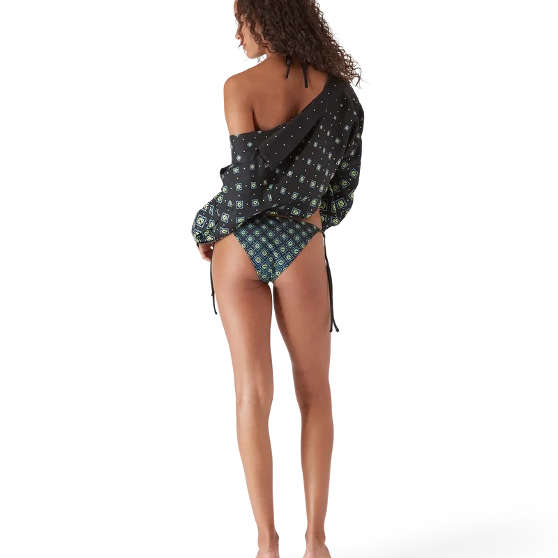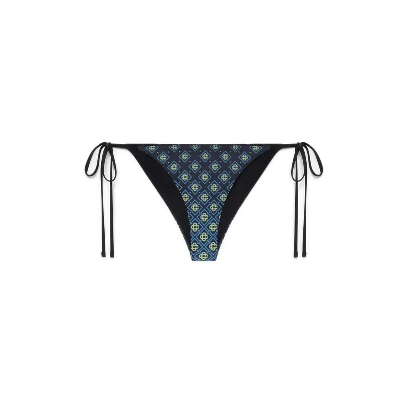 Bikinibotten i svart monogram med ton-i-ton-effekt har en raffinerad design med husets svarta monogrammönster och snörning. Den kompletteras med snörning vid höfterna – detta plagg är designat för att bäras tillsammans med den matchande bikinitoppen.