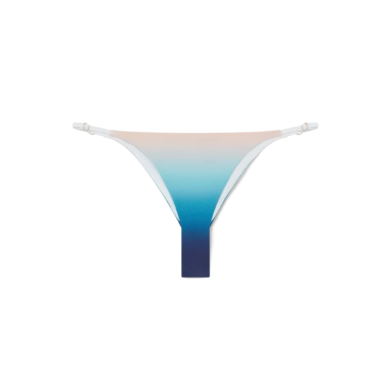 Bikinibotten med färgövergång är ett tryckt plagg tillverkat av ett andningsbart polyestermaterial med säsongens färgövergångar. Avslutas med kontrasterande vita snörningar – detta plagg är designat för att bäras med den matchande bikinitoppen.