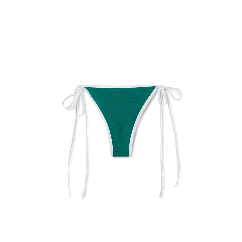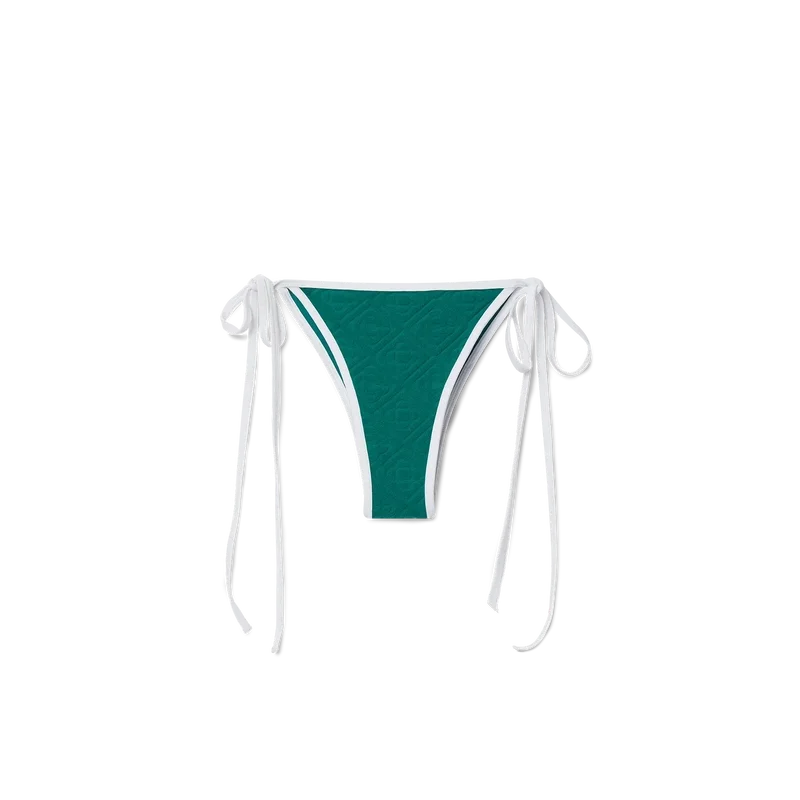 Den gröna Monogram-bikinibotten knyts vid höften med vita kontrastband. Den är tillverkad av Monogram 3D-jersey, har vita detaljer och är avsedd att bäras tillsammans med den matchande bikinitoppen.