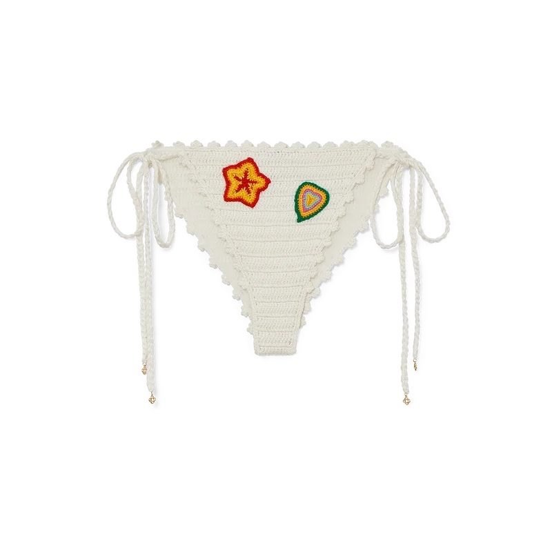 Denna bikiniunderdel med virkade motiv är tillverkad av virkat tyg. Den är utsmyckad med motiv från husets klassiska designelement och har snörning i höfterna. Denna modell är avsedd att bäras tillsammans med den matchande bikinitoppen.