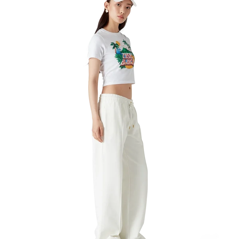 Casa Beach Wave Sweatpants är en tryckt design tillverkad av ekologiskt bomullstyg och har ett signaturmönster som påminner om en souvenir man skulle köpa på en strandsemester. Kompletterad med elastisk midja, dragsko med guldspetsar, fickor i sidorna och en påsydd ficka bak.