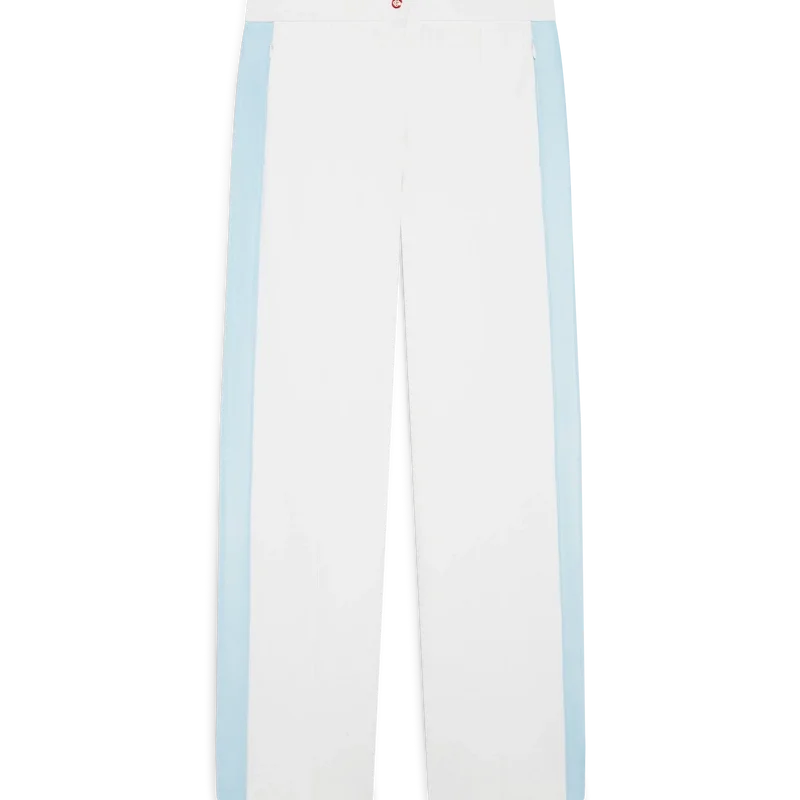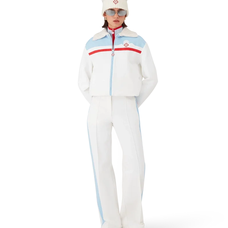 Skidbyxorna är en raffinerad Apras-Sport-design tillverkad av tekniskt torrt tyg i vitt, inspirerad av den kristallklara renheten i Japans alpina landsbygd. Designen hämtar inspiration från morgondimman över snötäckta dalar och frusna sjöar som speglar höga berg och har en prestationsinriktad konstruktion med polyesterfoder.