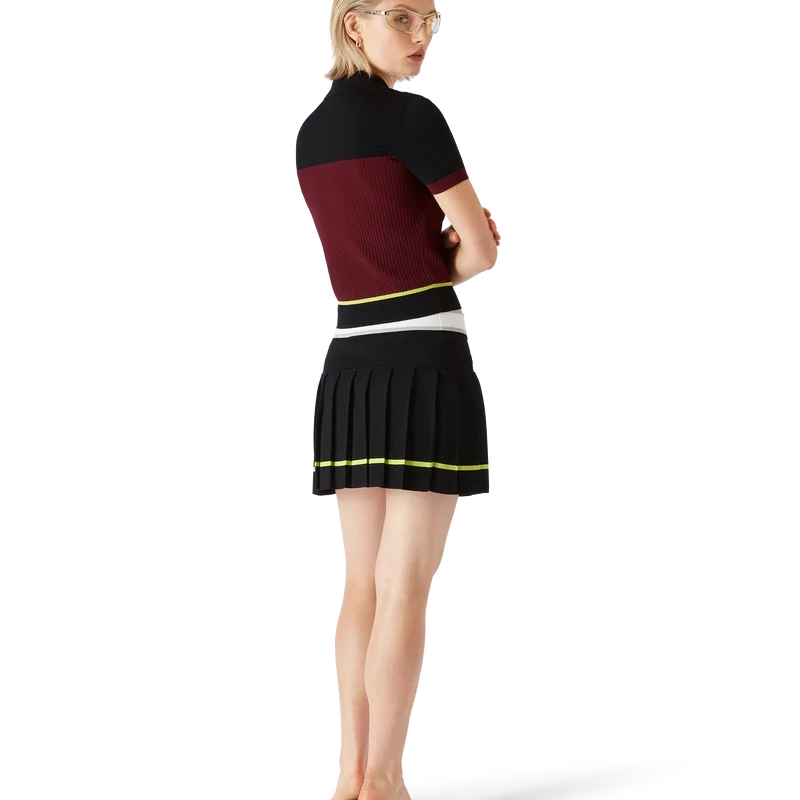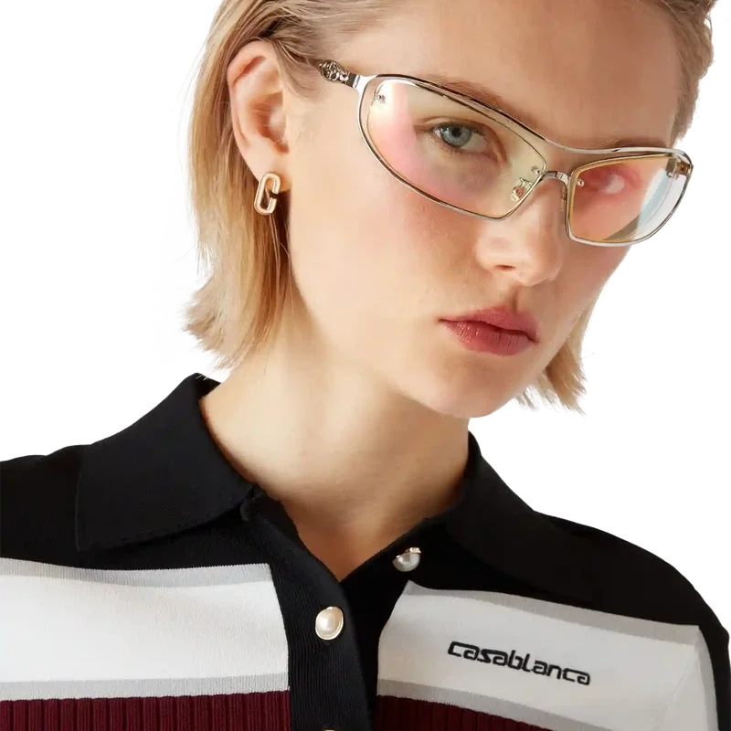 Den randiga kortärmade pikétröjan har en raffinerad design med en klassisk stickad konstruktion. Silhuetten utstrålar diskret elegans med en smal passform. Kompletterad med ribbad krage, knäppning och signaturknappar med guldkant.