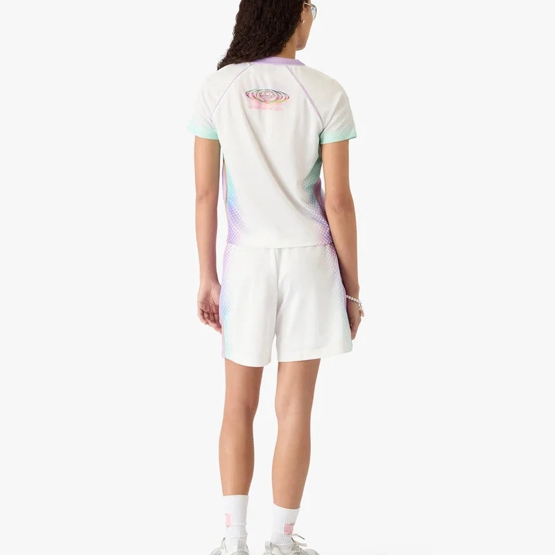Glass Gradient Football Mesh Shorts har en raffinerad design med säsongens slående Glass Gradient-konstverk, skapat i samarbete med Martin Naumann, känd för sitt arbete där han blandar gradient- och textureffekter med halvtoner och glasliknande effekter. Kompletterade med elastisk midja, dragsko, kontrasterande piping längs sidorna och sidfickor. Designade för att bäras tillsammans med den matchande fotbollströjan i mesh.