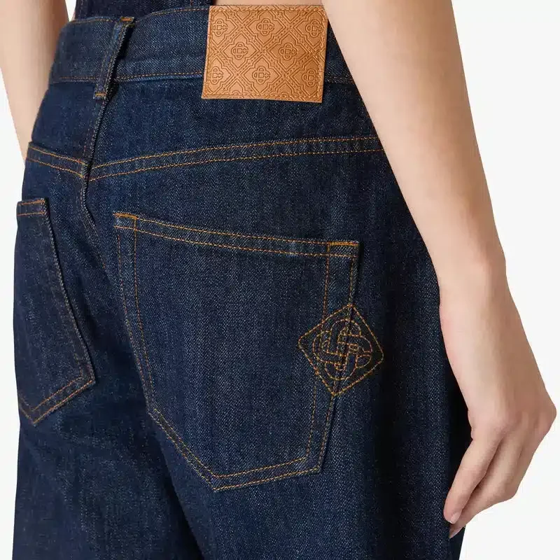 Indigo Baggy Jeans är ett par raka jeans tillverkade av bomullsdenim i en djup indigotvätt. Försedda med bälteshällor, dragkedja, fram- och bakfickor samt en avslappnad, baggy silhuett.