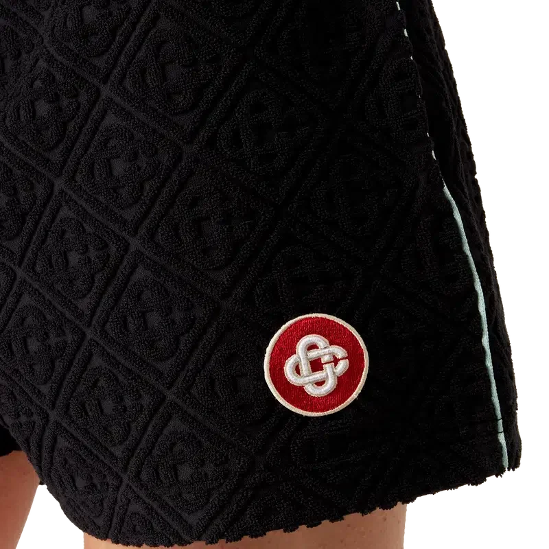 Monogram Jacquard-frottéshorts är en klassisk sportdesign tillverkad av Monogram-frottétyg. De har elastisk midja, dragsko, CC-logotyp, fickor i sidorna, en påsydd ficka bak och pipingdetaljer längs sidorna.