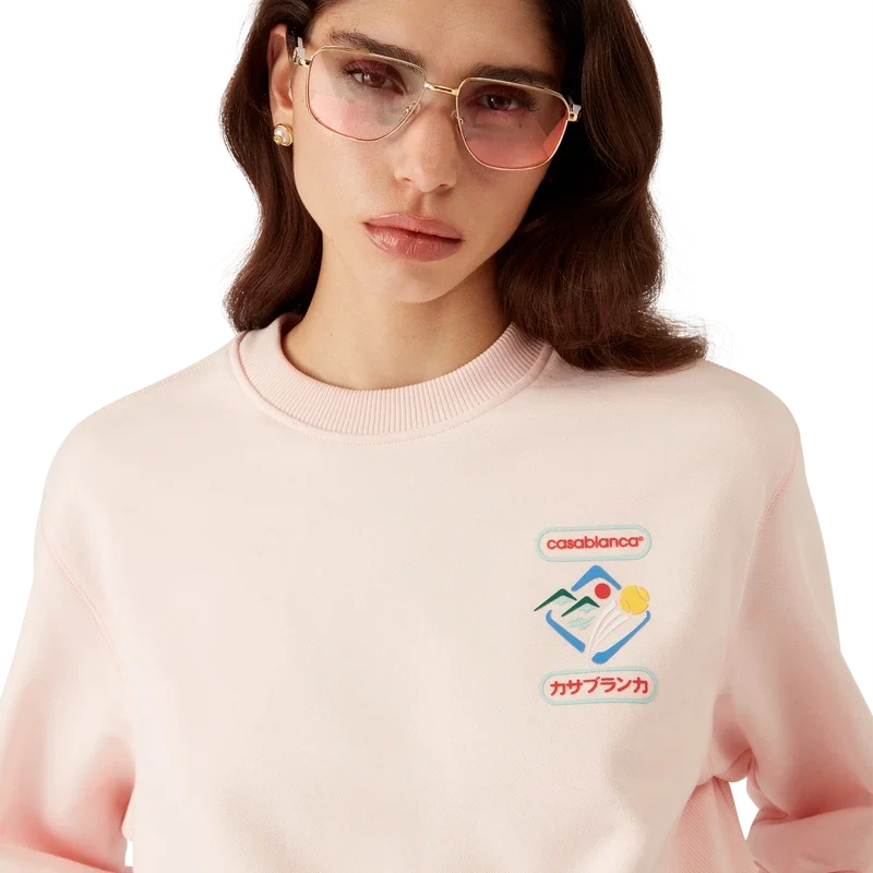 Casablanca Montagne Sportif-tröjan är en långärmad modell tillverkad av ekologiskt bomullstyg med husets säsongsbetonade konstverk. Kompletterad med en klassisk rund hals, ribbade sidopaneler samt ribbade muddar och nederkant.