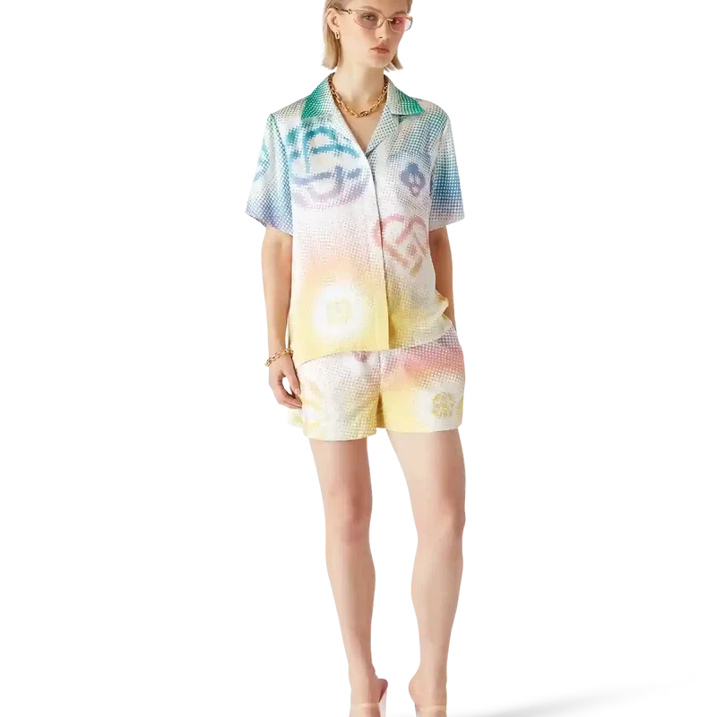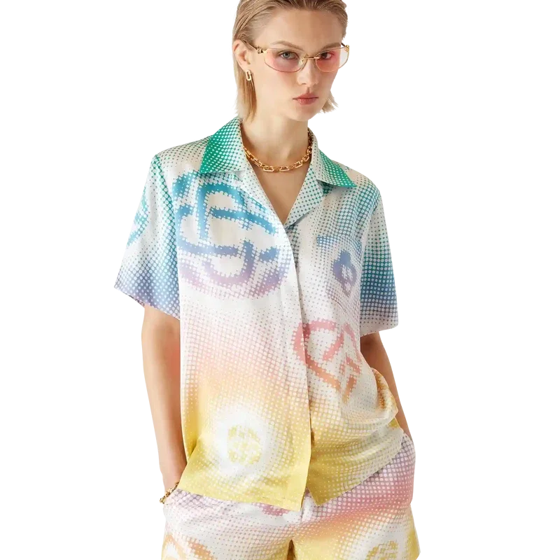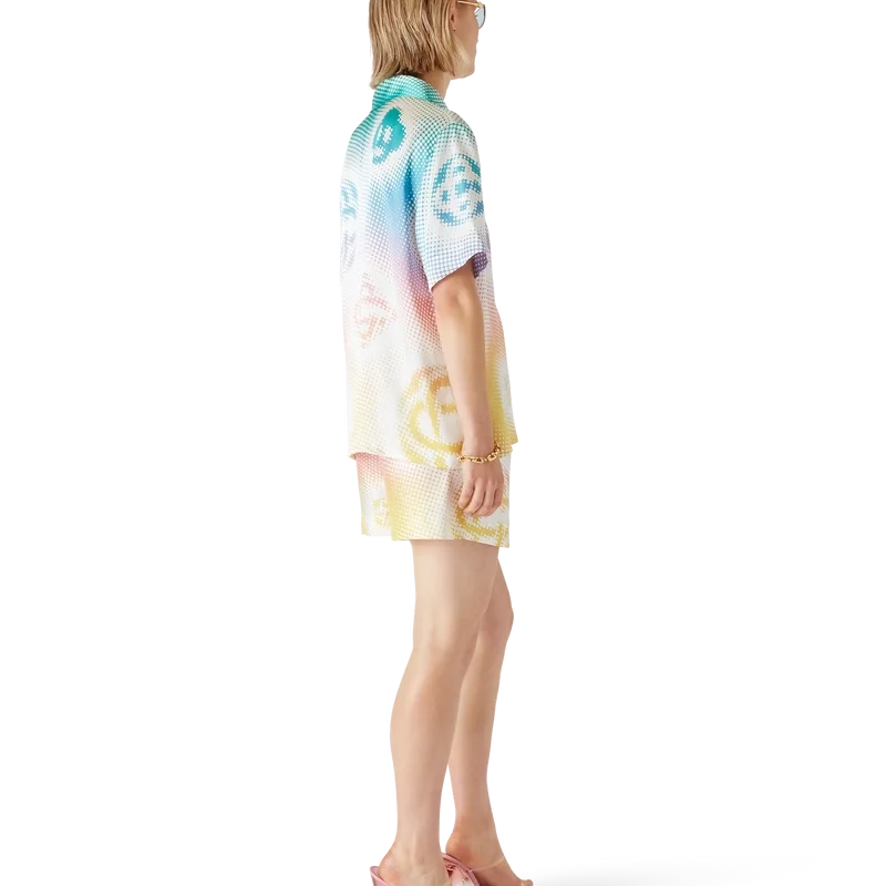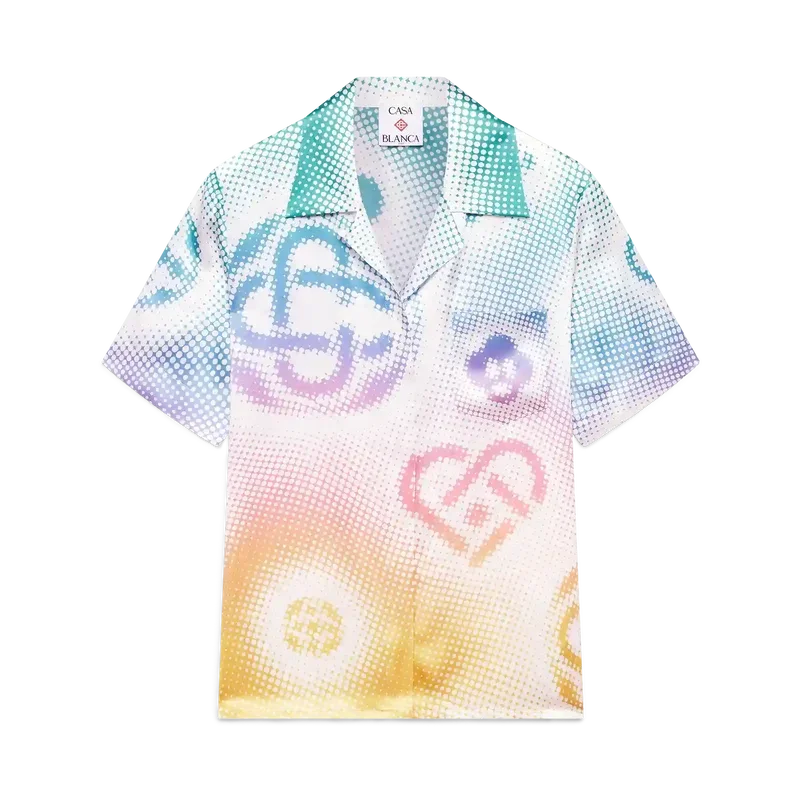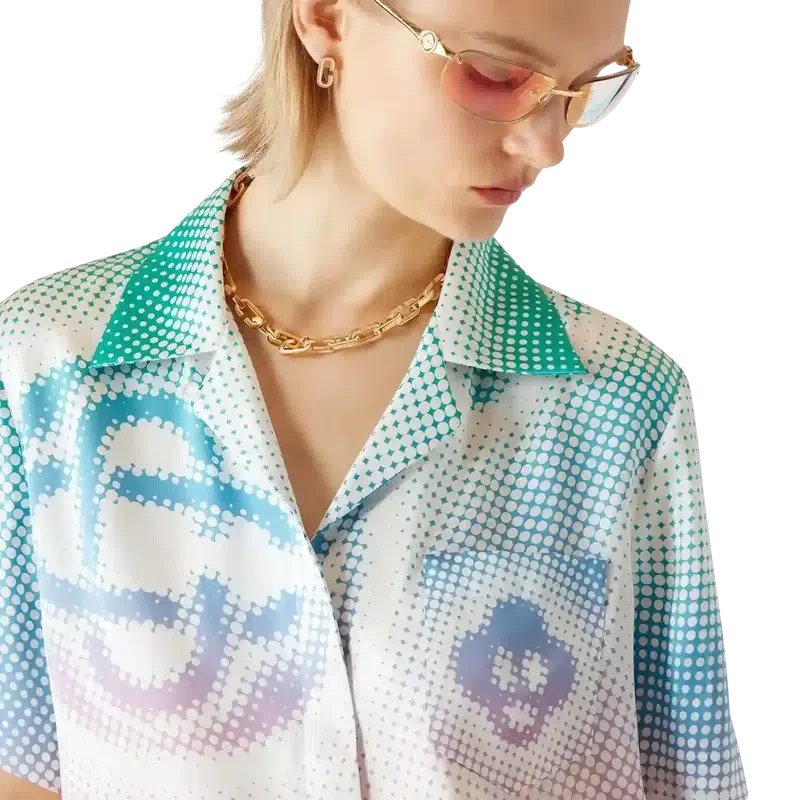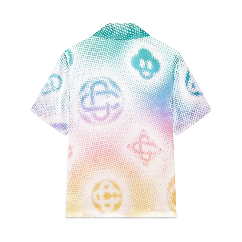 Halftone Logo-kortärmad skjorta är ett heltäckande tryckt mönster med husets monogram i airbrush-teknik, som bygger vidare på våra tidigare experiment med tekniken. Kompletterad med kubansk krage, knäppning, bröstficka och Corozo-knappar med sammanflätade CC-logotyper.