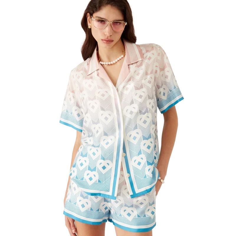Kortärmad skjorta i siden med hjärtmonogram i gradient