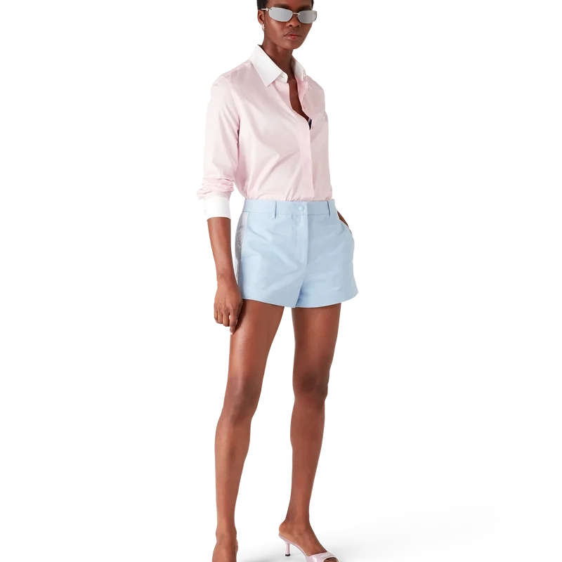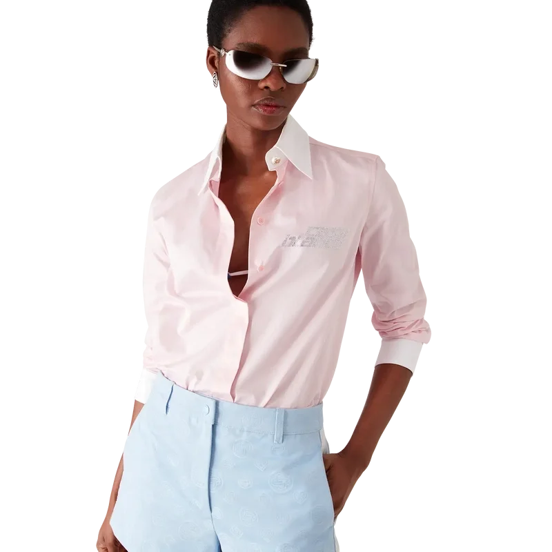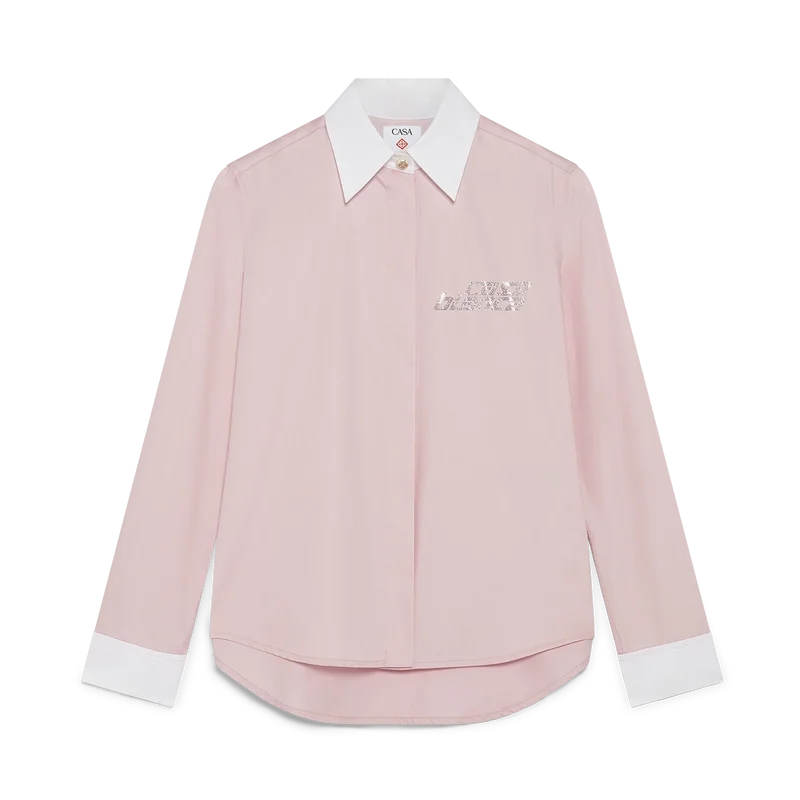 Crystal-skjortan med långa ärmar har en skräddarsydd design prydd med en kristall-logotypapplikation. Kompletterad med kontrasterande vita manschetter och en spetskrage, dold knäppning, Cc-logotypknappar i corozo samt Cc-logotypknappar i pärlemor vid kragen och manschetterna.