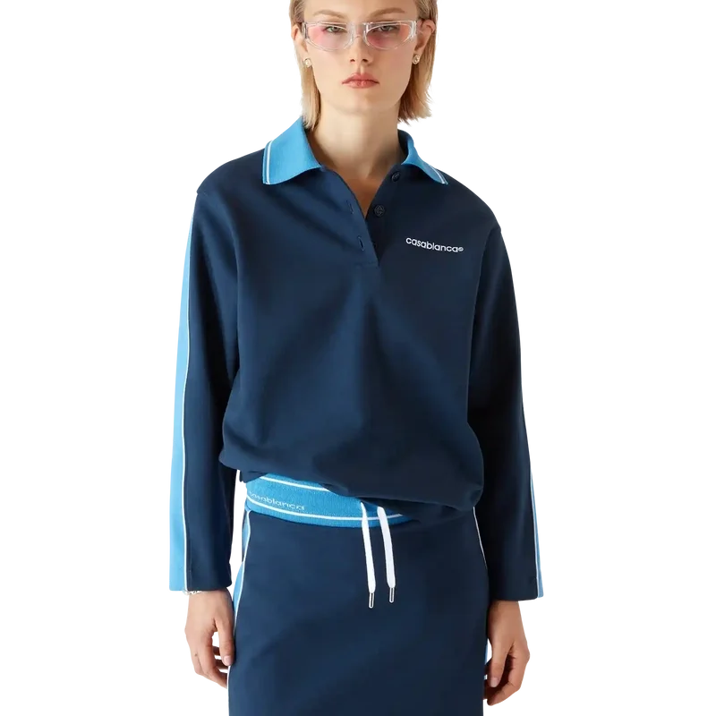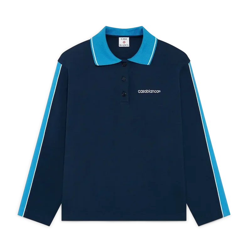 Punto Polo-tröjan med krage är en långärmad klassiker med märkets Casablanca-logotyp. Den har en kontrasterande ribbad krage med kantdetaljer, randiga ärmar och är tillverkad i mjuk bomull med kontrasterande detaljer vid halsen.