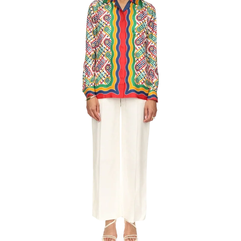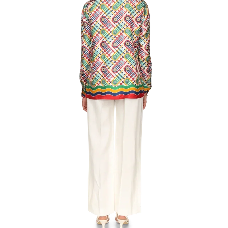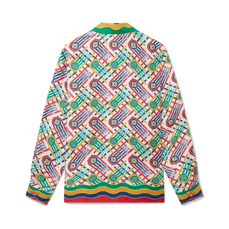 Tennis Monogram långärmad silkesskjorta för damer med husets signaturmotiv, omtolkat för den exklusiva Nordstrom-kollektionen som kretsar kring modern tennisinspirerad athleisure.