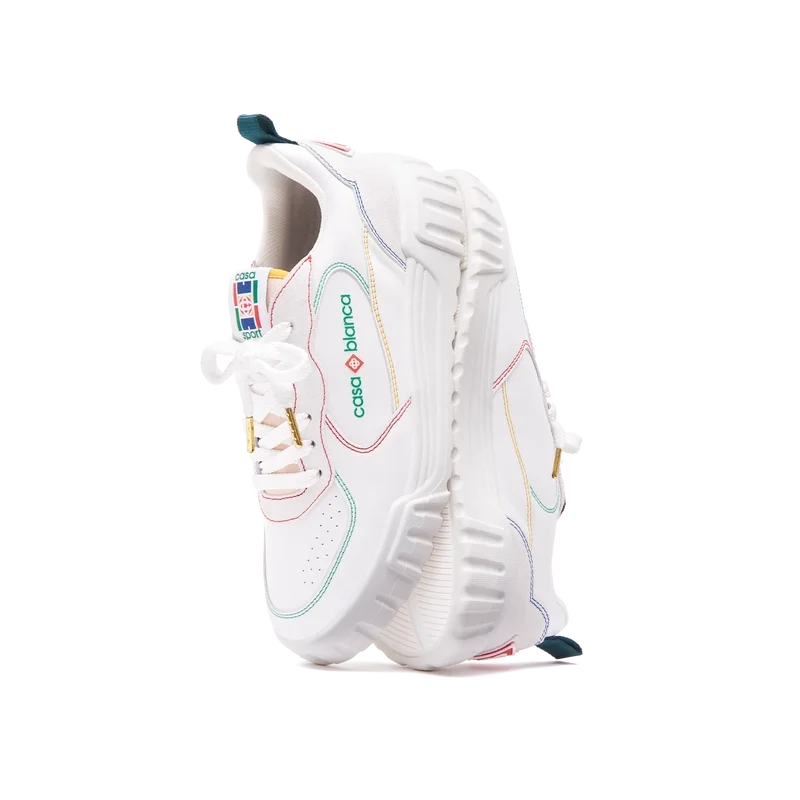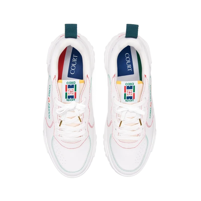 Designspråket hos Court-sneakersen speglar de ikoniska silhuetterna från 90-talet. Färgerna som återfinns över hela gummisulan är en kombination av de raffinerade koderna från tennis och klassisk arkitektur och skapar en enhetlig palett över hela skon, med fokus på primärfärger som kontrasteras av tennisvitt för att skapa en sportfokuserad färgberättelse. Övre del i tonat vitt läder Casablanca-gummipatch med diamantmönster på hälen Casablanca Sport-logotyp i silikon på sidan Vävd Court-tungetikett Yttersula inspirerad av tennisbanor i tennisinspirerade primärfärger Guldfärgade snörspetsar Tull och avgifter Observera att importtull och skatter kan tillkomma vid leverans för kunder utanför EU. Kontakta ditt lands tullkontor för att ta reda på lokala importtullar och skatter innan du köper. Du kanske vill välja en mindre storlek om du ligger mellan två storlekar.