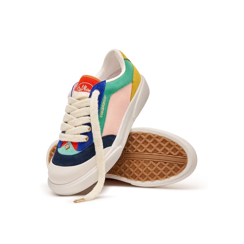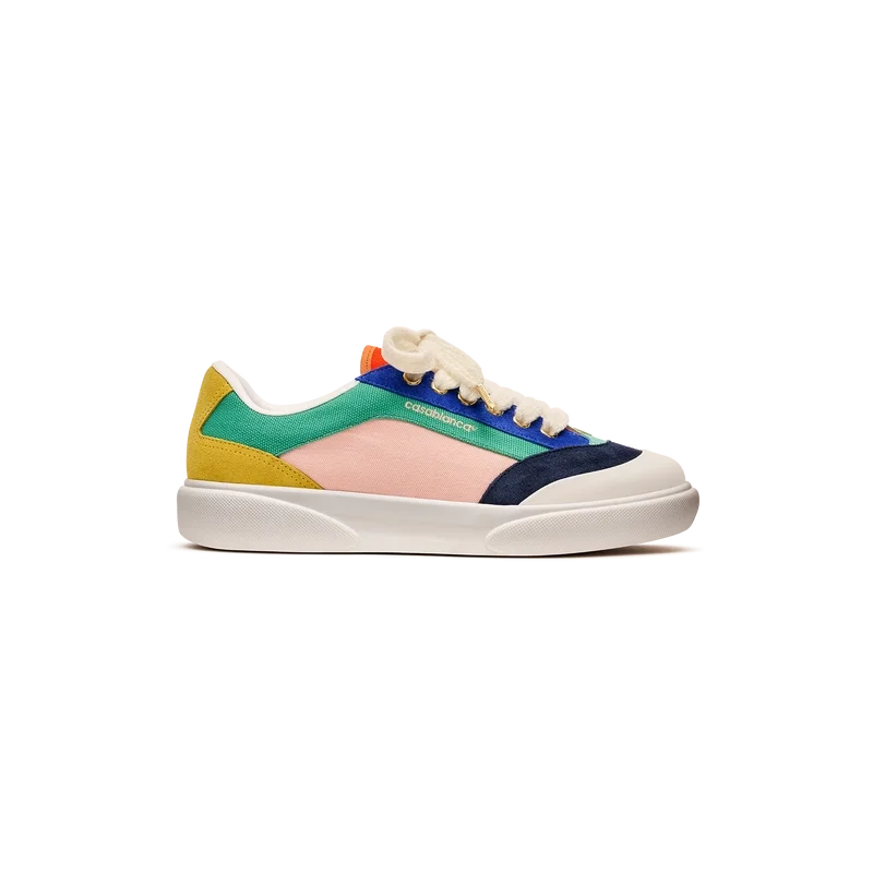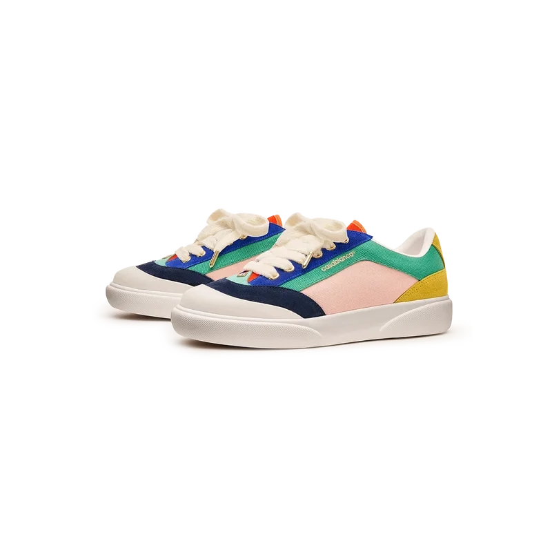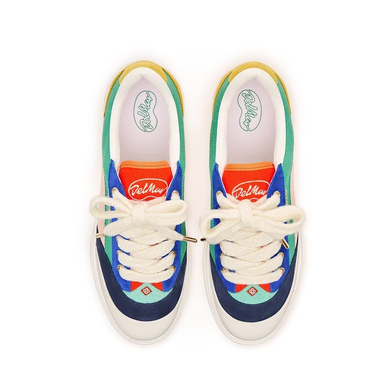 Dam-sneakersen Del Mar Multicolour har fått sitt namn från den berömda skateparken i Kalifornien från 1980-talet. Del Mar-sneakersna är inspirerade av klassiska skateskor från slutet av 70-talet till början av 80-talet. De har många av de tidiga skateskornas kännetecken med ovandel i canvaspaneler, tåhätta i gummi, platt sula och tjocka snören, kontrasterande snörhål och diskret märkning. Den gröna färgkombinationen är Casablancas klassiska märkesfärg.