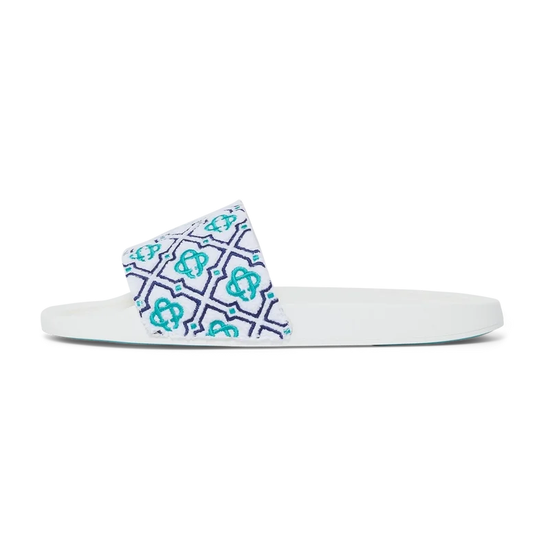 Monogram Towelling Sliders är tillverkade av ett Monogram-frottétyg och har husets Diamond Monogram på ovansidan. Avslutas med vadderade gummisulor.