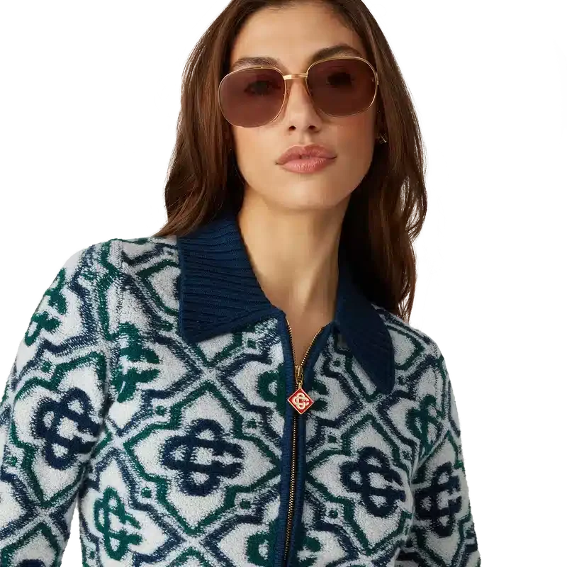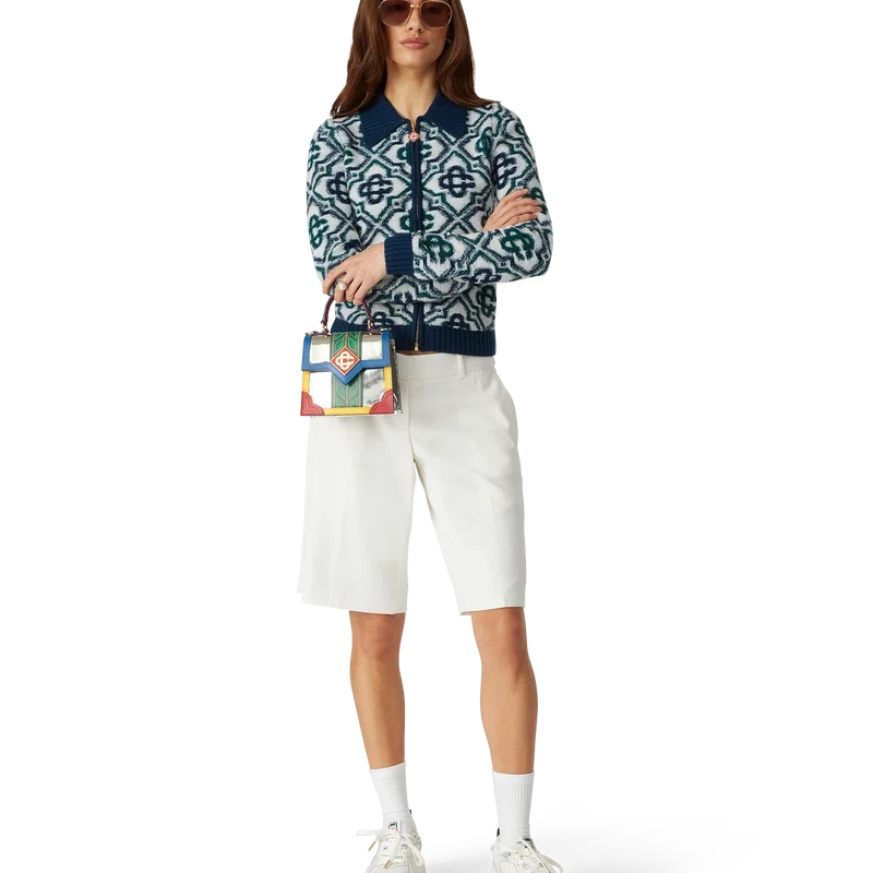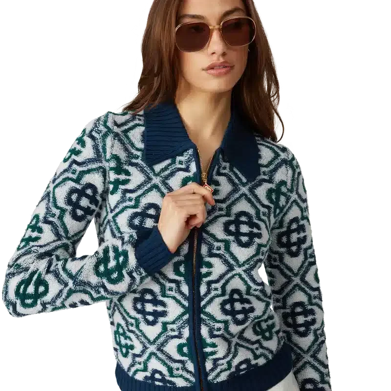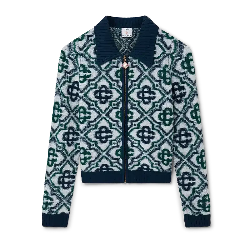 Monogram Knit Zip Jumper är en klassisk design med husets signaturmönster, tillverkad i en stickad ullblandning. Avslutas med dragkedja fram, kontrasterande ribbad krage, muddar, nederkant och sidfickor.