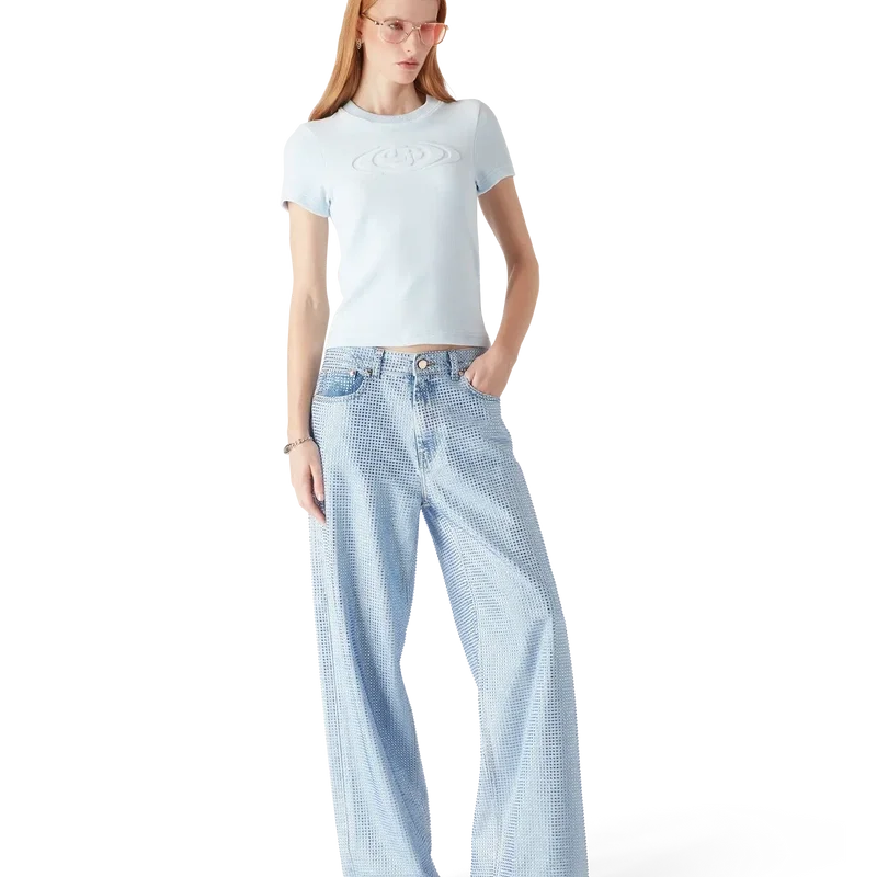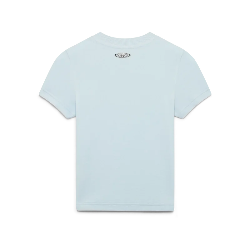 Denna kortärmade T-shirt i velour har en klassisk design med varumärkets Warped-logotyp präglad i mitten. Den har en klassisk ribbad rund hals och en smal silhuett.