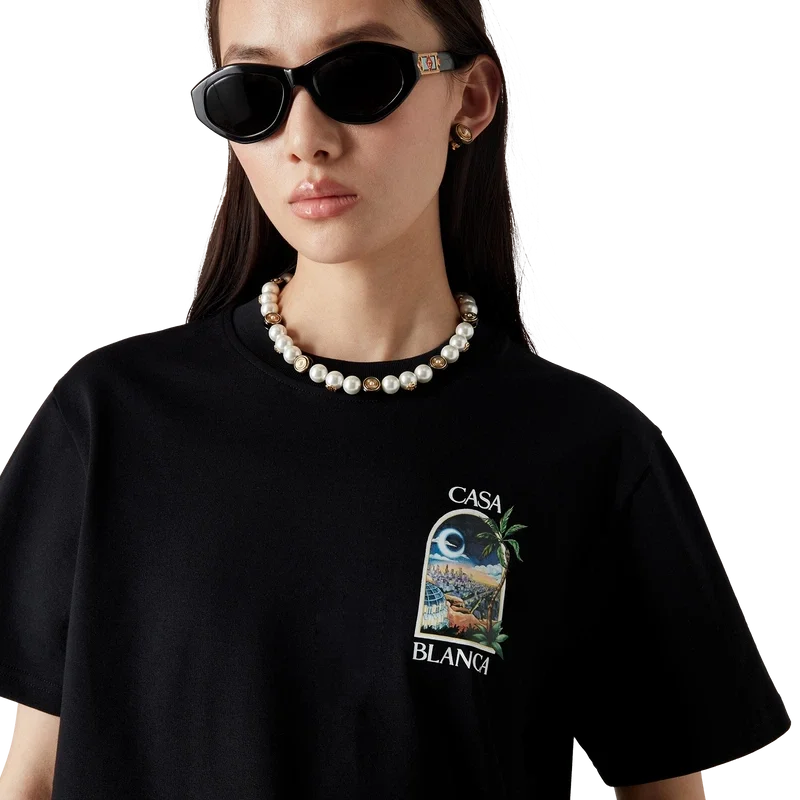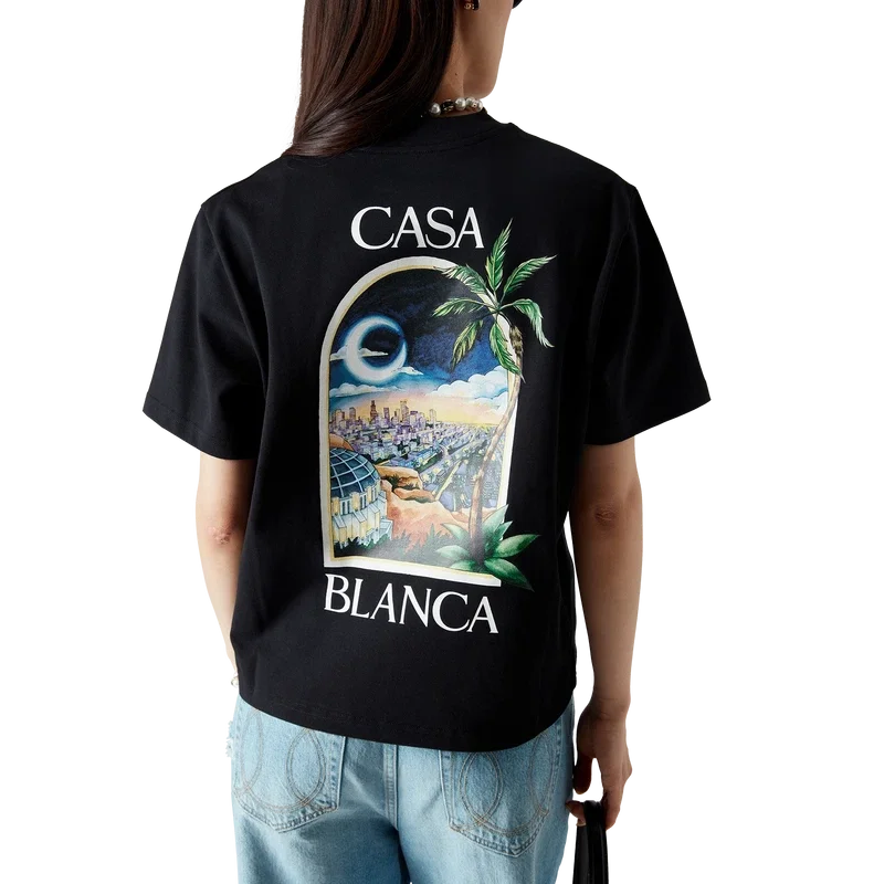 La Nights T-shirt är en kortärmad T-shirt med tryck, tillverkad av ekologisk bomull och med ett signaturmotiv som föreställer ett fönster mot ett nattligt landskap i La. Avslutad med en klassisk rund hals.