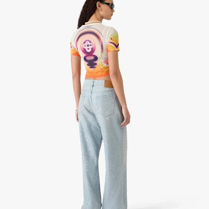 Sporchid-tryckt kortärmad T-shirt i mesh för barn har en raffinerad design med säsongens Sporchid-motiv, som består av former och färgövergångar som föreställer kolonnen och pollinierna hos orkidéblomman. Kompletteras med rund halsringning och en smal silhuett.