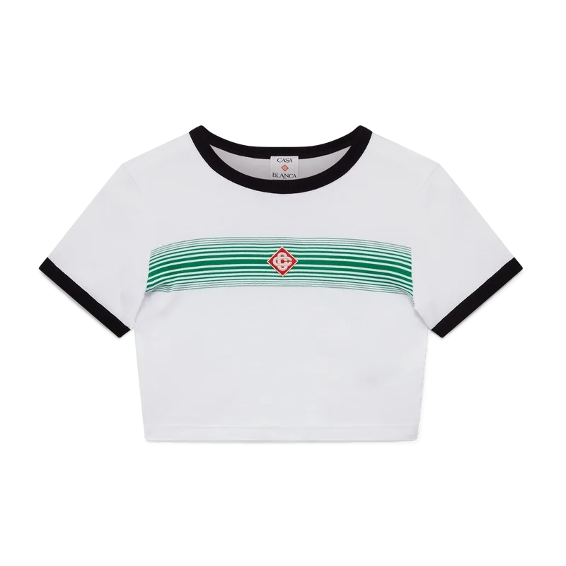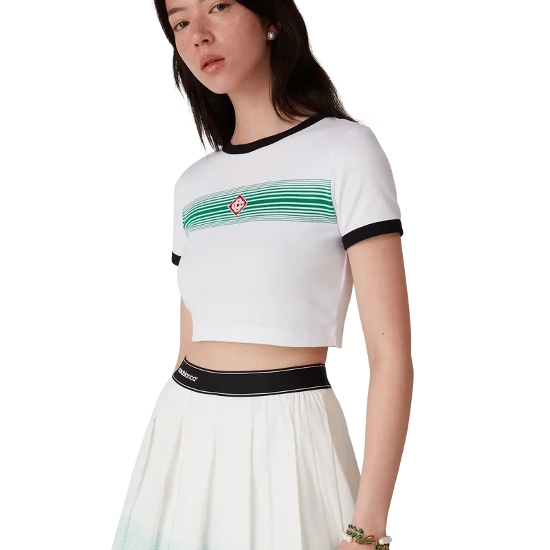 Gradient Stripe Ringer T-shirt är en figursydd modell med husets diamantlogo som applikation. Tillverkad i bomullstyg och avslutad med en klassisk rund halsringning samt kontrasterande ribbade krage och ärmslut.