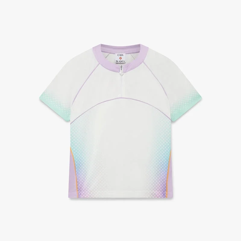 Glass Gradient kortärmad fotbollströja i mesh har en raffinerad design med säsongens slående Glass Gradient-motiv, skapat i samarbete med Martin Naumann, känd för sitt arbete med att blanda gradient- och textureffekter med halvtoner och glasliknande effekter. Skjortan har rund hals, dragkedja och kontrasterande pipingdetaljer i en figursydd silhuett. Designad för att bäras med matchande fotbollsshorts i mesh