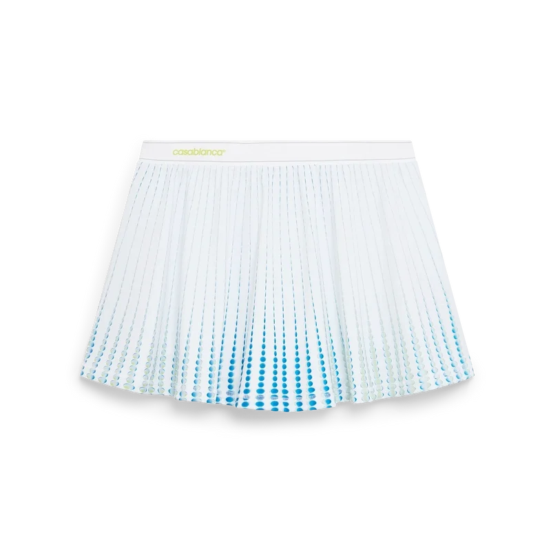 Tennis Printed Racer Skirt Jointed Jacquard Skirt är en A-linjeformad kjol med konstverk skapat i samarbete med Martin Naumann, känd för sitt arbete med gradienter och textureffekter. Avslutas med ett elastiskt midjeband med Casablanca-logotypen och randiga detaljer.