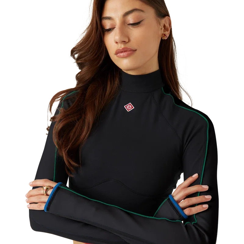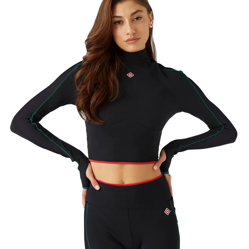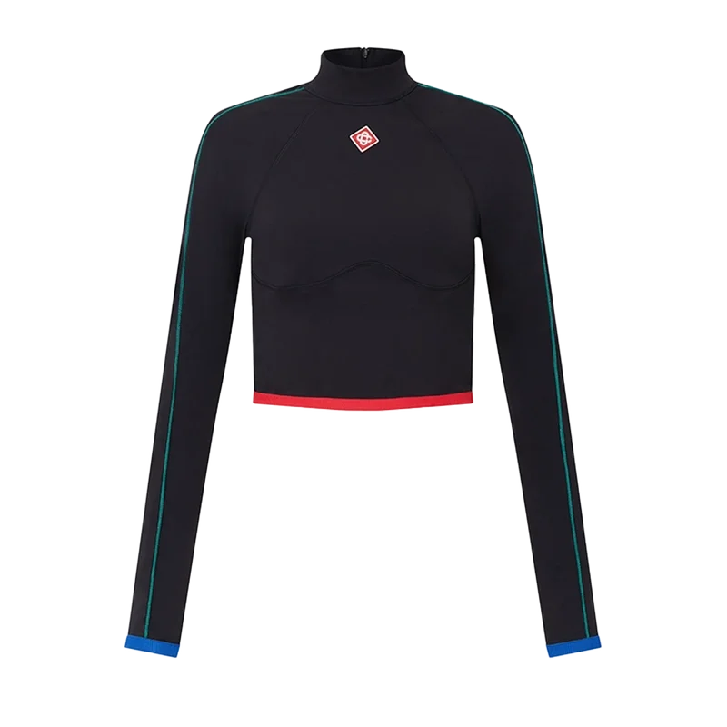 Sporttröjan är en långärmad träningströja tillverkad av stretchigt sporttyg. Den är försedd med märkets signatur Diamond Monogram, polokrage, vita ränder från axlarna till handlederna och kontrasterande detaljer i nederkanten.