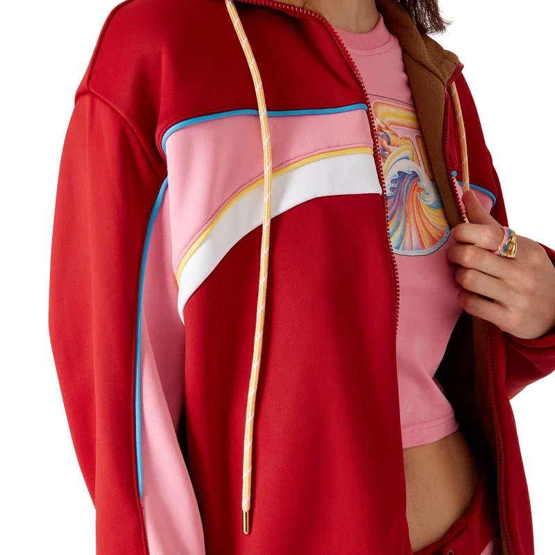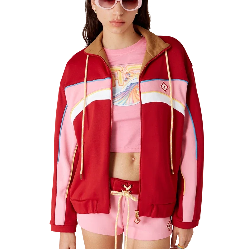 Tricot Oversized Track Jacket är en långärmad sportjacka tillverkad av trikot. Den har en trattkrage, dragsko, dragkedja samt elastiska muddar och nederkant.