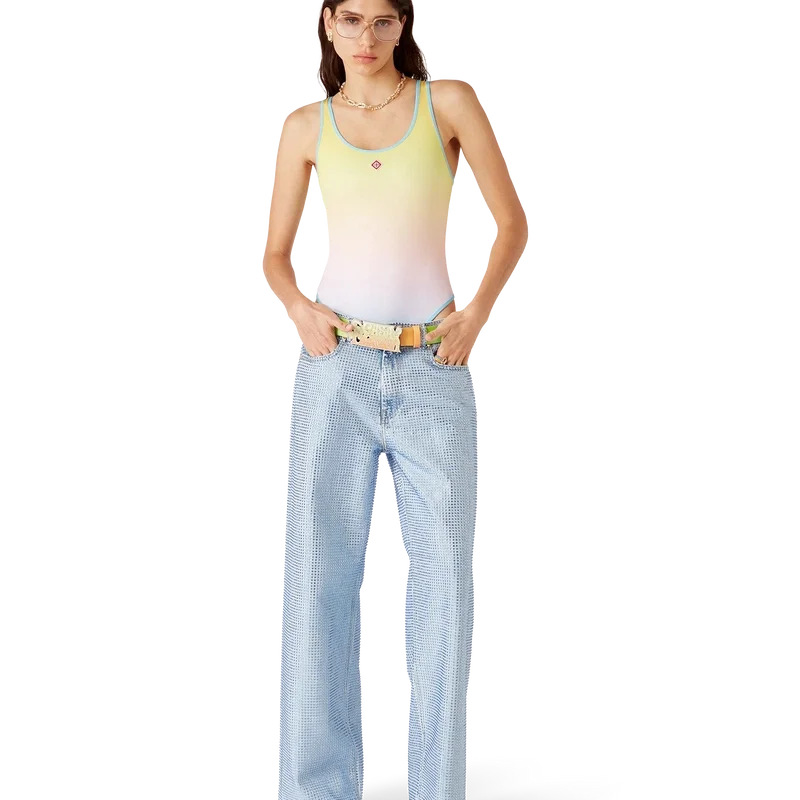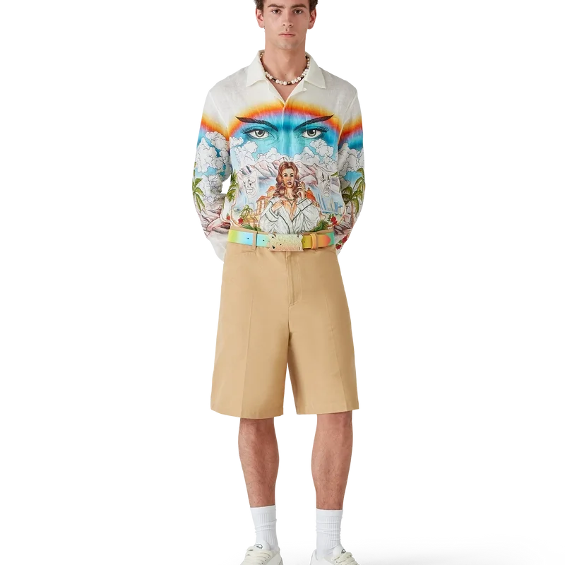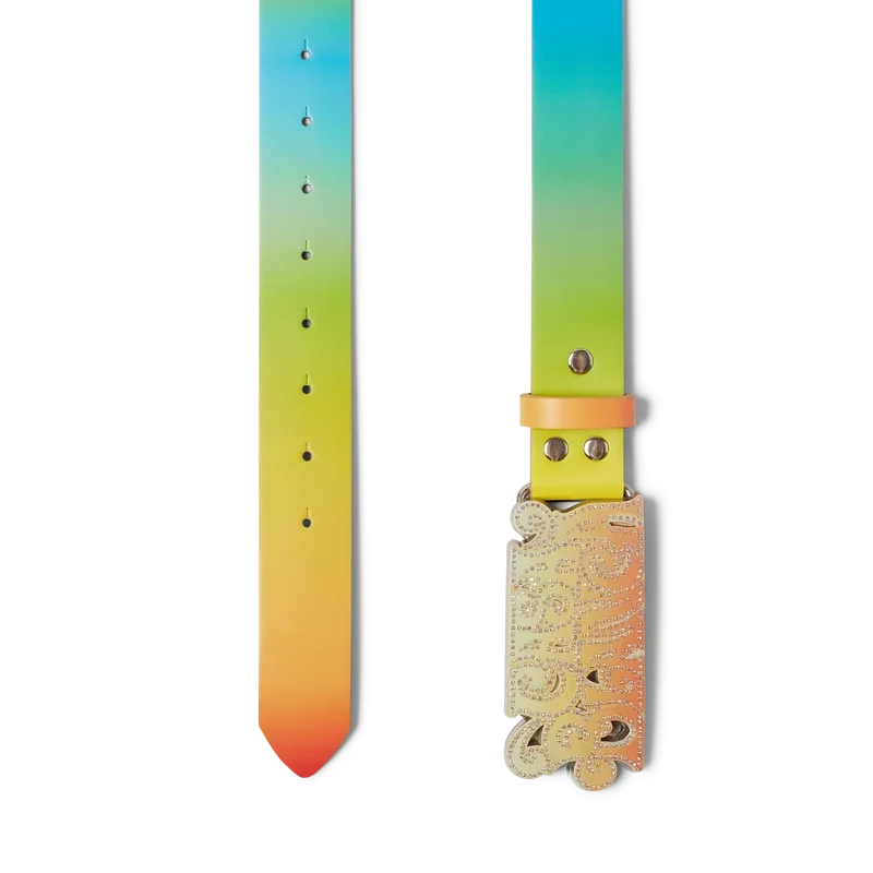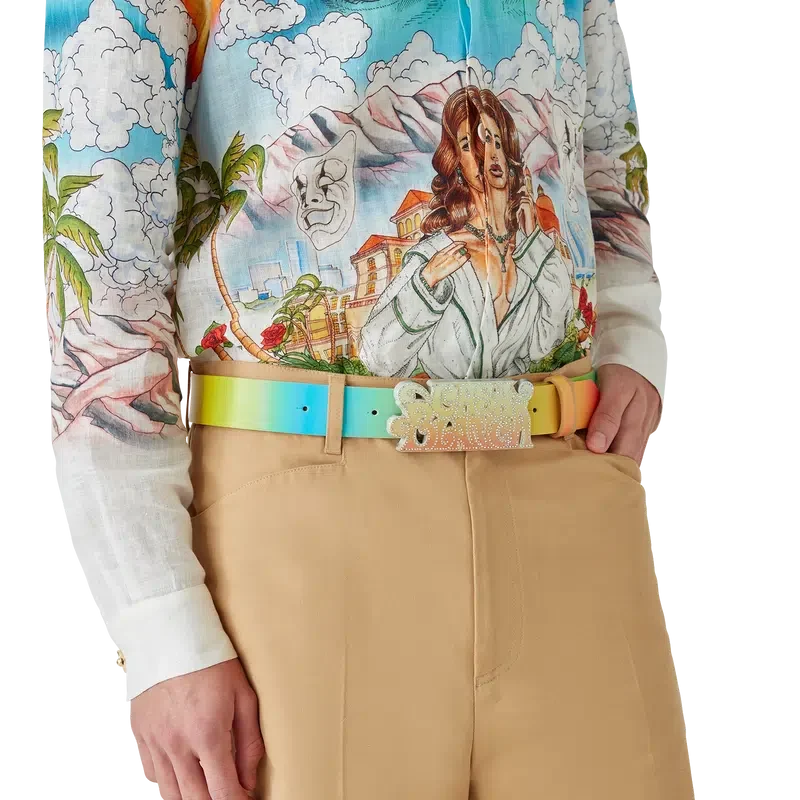 La Musique-bältet har ett mångfärgat design med en psykedelisk tryck i 70-talsstil och livfulla färger som hyllar Bootsy Collins legendariska bidrag till funkmusikscenen. Tillverkat av kalvskinn och kompletterat med ett målat mässingsspänne med Casablanca-logotypen i 70-talsinspirerad typografi.