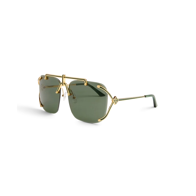 Huvudbåge: Rostfritt stål, emaljfärg, guldpläterad metall, plätering: galvaniskt guld, linser: nylon. Tillverkade i Japan.