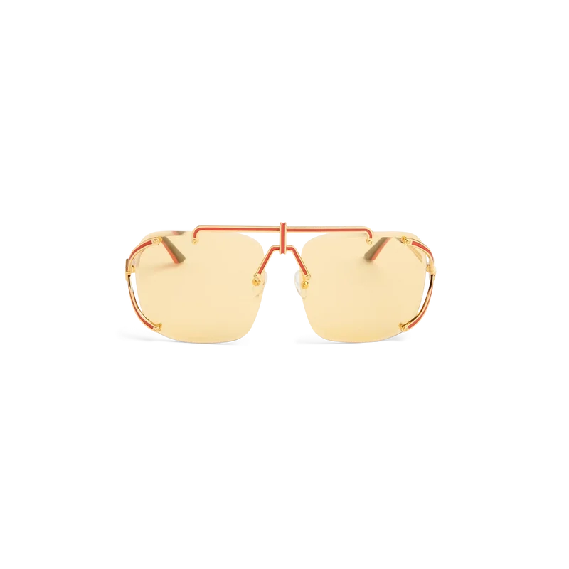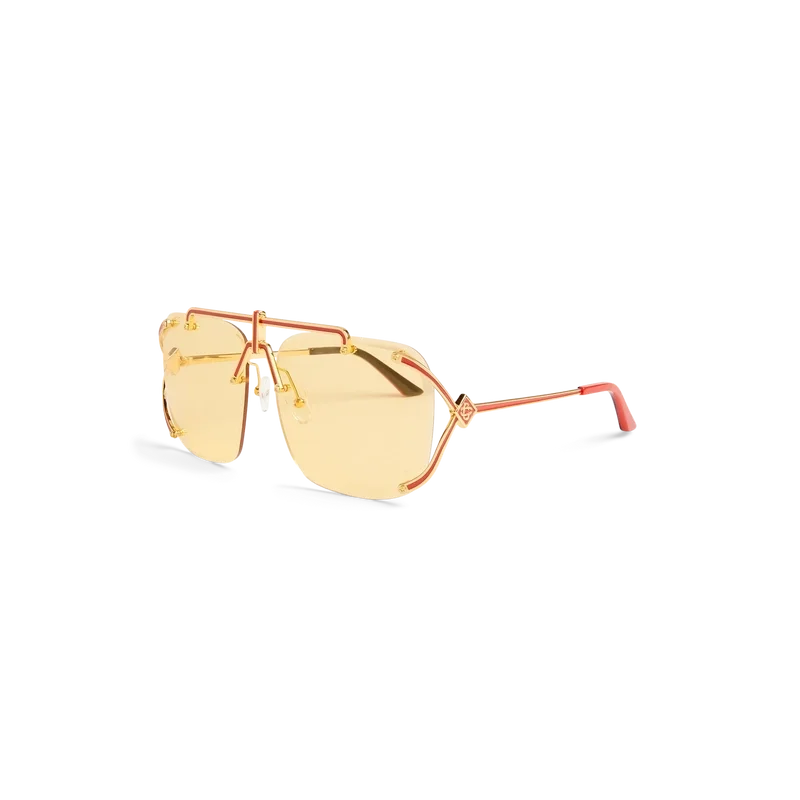 Pilot-solglasögonens guld- och röda metallkonstruktion präglar dessa solglasögon med pilotbåge. Här kompletteras den karakteristiska stilen med en säsongsbetonad brygga. De gula linserna ger 100 % UV-skydd och modellen levereras komplett med en Casablanca-ask, rengöringsduk och garantibroschyr.