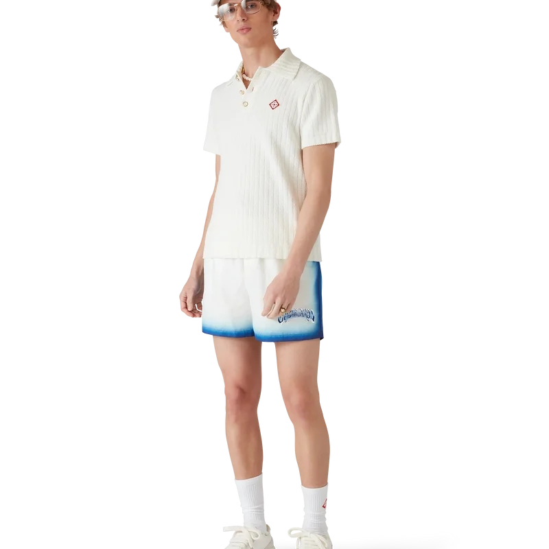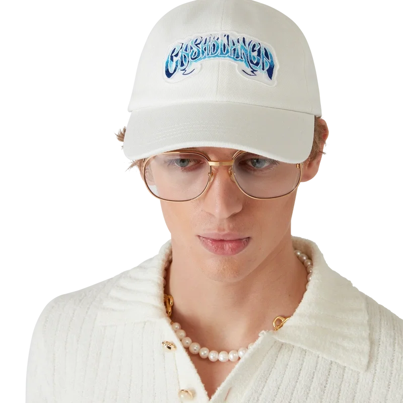 Blue Fade Cap är en klassisk basebollkeps tillverkad av bomullstyg med handritad typografi av Casablanca-logotypen, inspirerad av den gotiska typsnitt som används i tatueringar. Avslutas med en skärm och ett guldpläterat justerbart spänne.