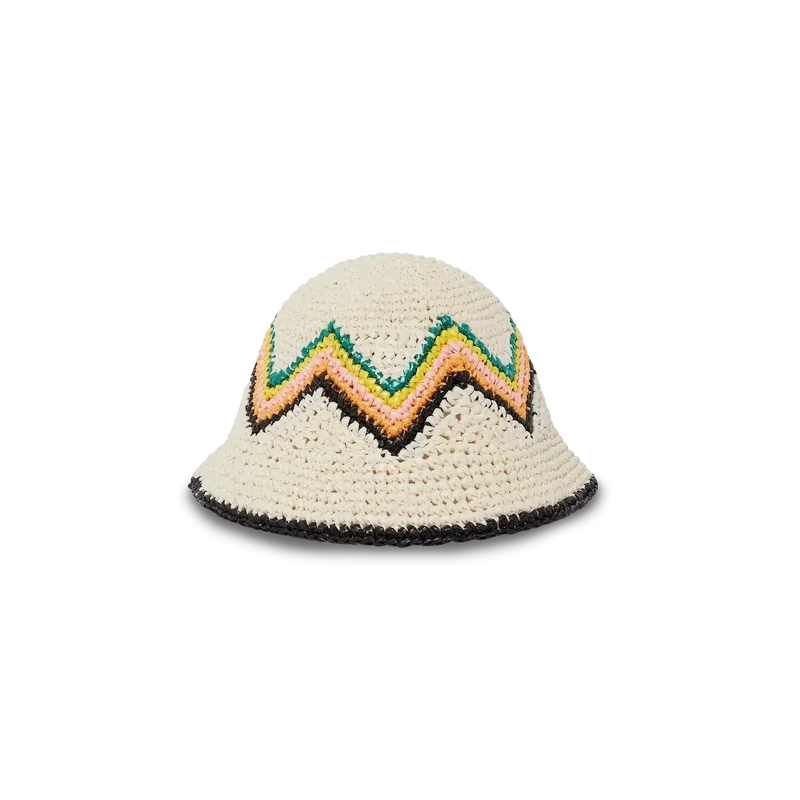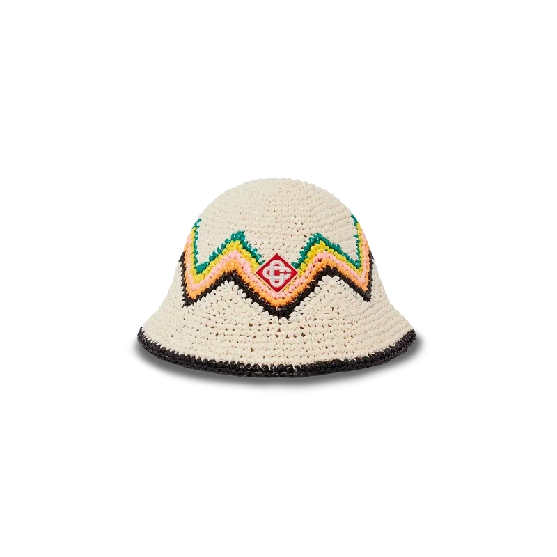Raffia-kroketthatten är en hatt i bucket-stil tillverkad av ett mjukt, texturerat, öppet vävt krokettyg i vår säsongens färgpalett av grönt och vitt – den ultimata sommarfavoriten. Avslutad med en applikation av Casablanca-Diamond Monogram i mitten.