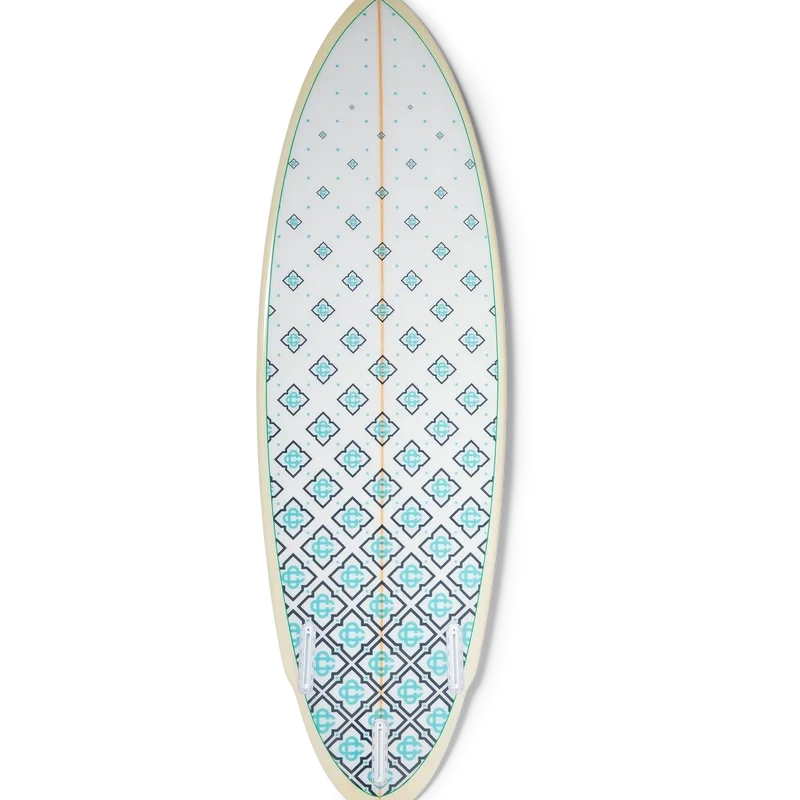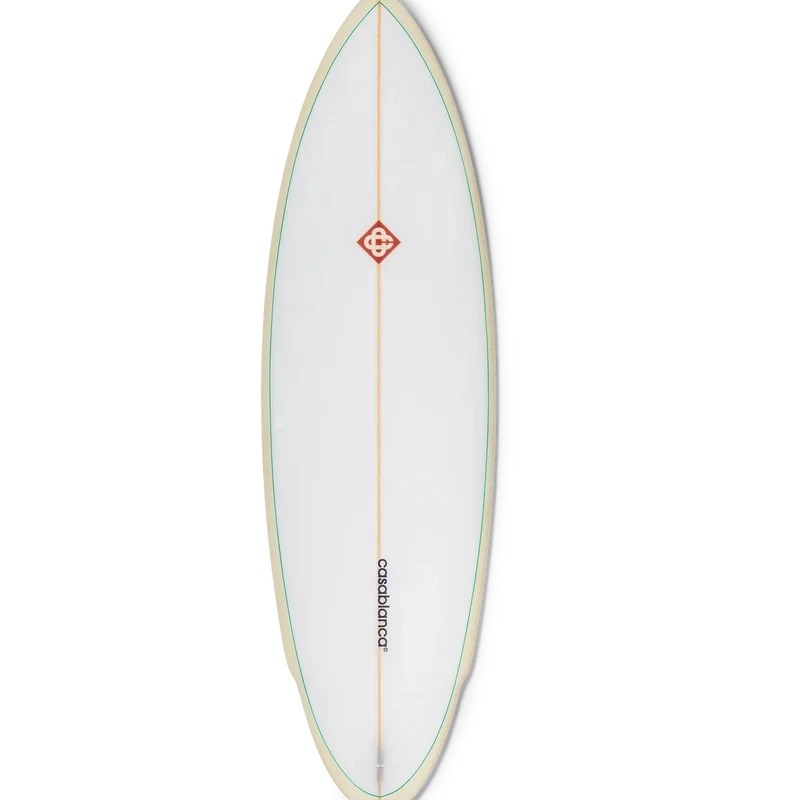 Casablanca-surfbrädan är tillverkad av högkvalitativ glasfiber, polyuretanskum och polyesterharts och har husets Degrade Monogram-tryck på undersidan samt Casablanca-märkning med det karakteristiska diamantlogotypen på däcket. Kompletterad med en trästräng, ett vitt däck med mintgrön kant och ljusgula sidor. Casablanca-surfbrädan mäter 178,2 cm (från nos till tail) x 53 cm (från kant till kant vid bredaste punkten). Denna artikel levereras utan fenor eller leash.