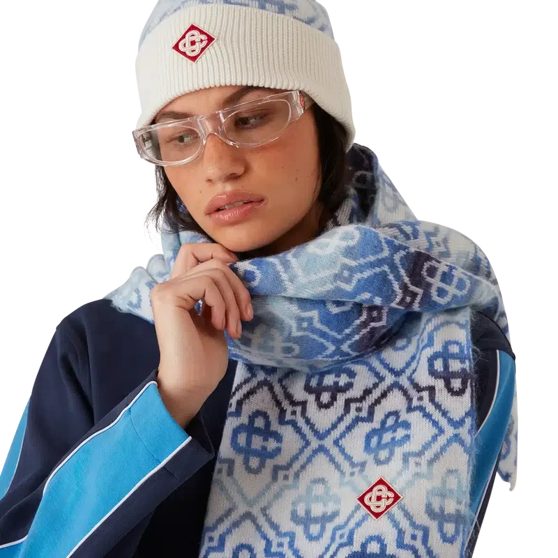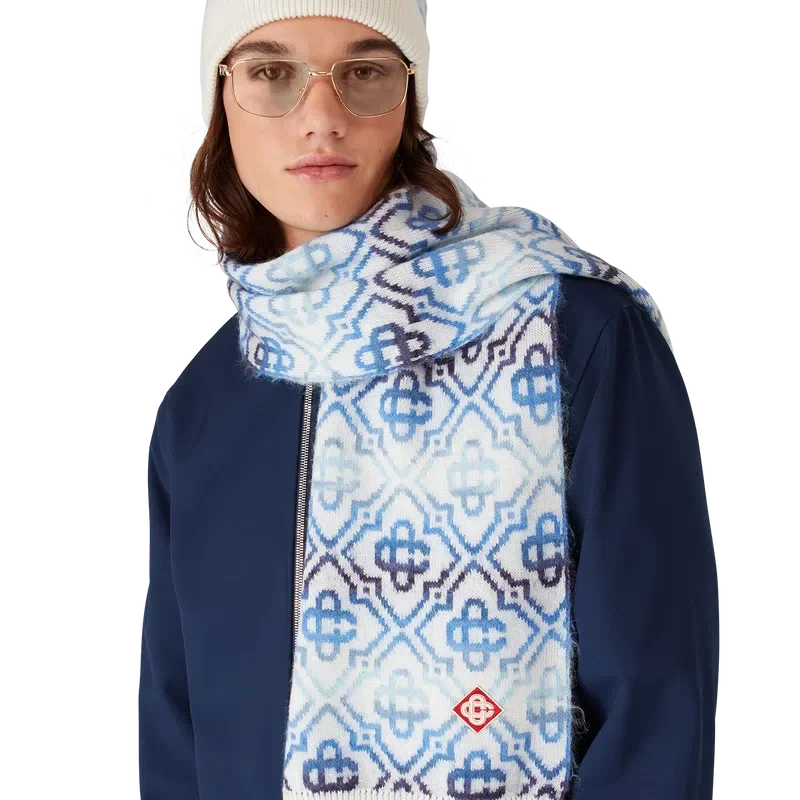 Space Dye Monogram-scarfen är tillverkad av en lyxig ullblandning med husets signaturmönster, Diamond Monogram, som är skapat av space-dyed-garn som ger djup och dimension. Avslutas med ribbade kanter.