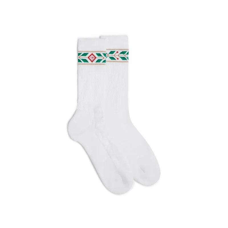 Laurel Ribbed Sport Strumpor har en raffinerad design och är tillverkade av en bomullsblandning med husets signaturmotiv Laurel på muddarna. Avslutade med ribbade ben.