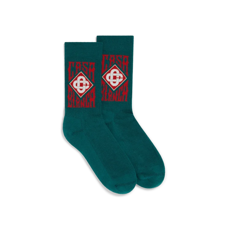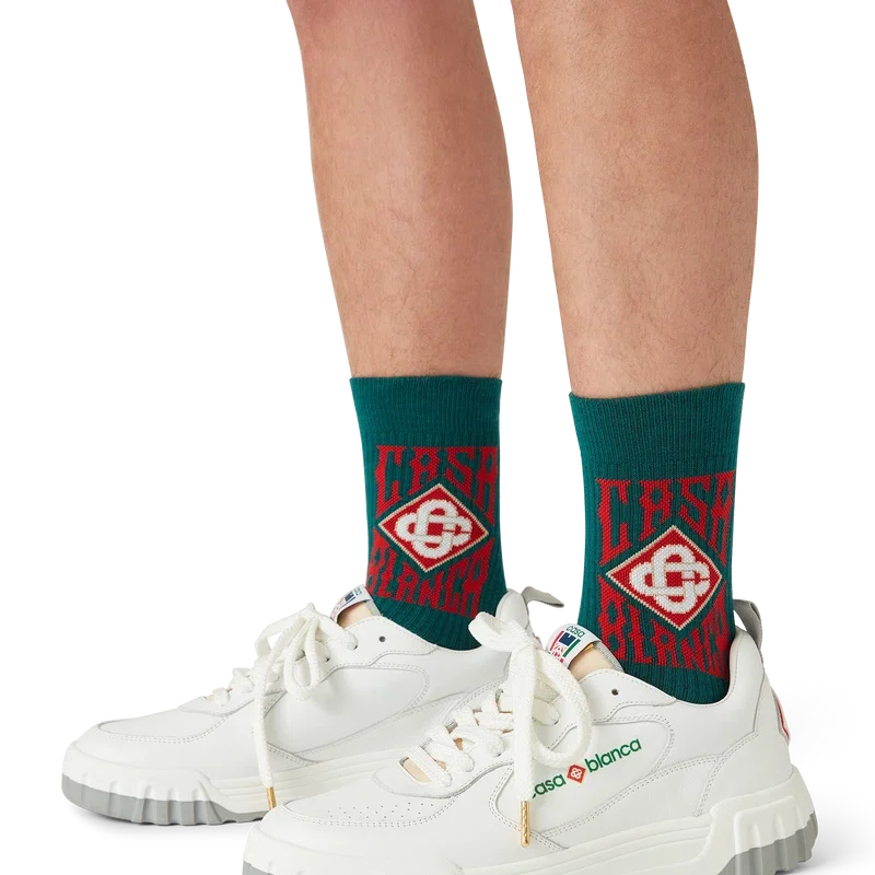 Gothic Logo-strumporna är tillverkade av ett bomullsblandat tyg och har husets gotiska staplade logotyp. Avslutade med ribbade ben.