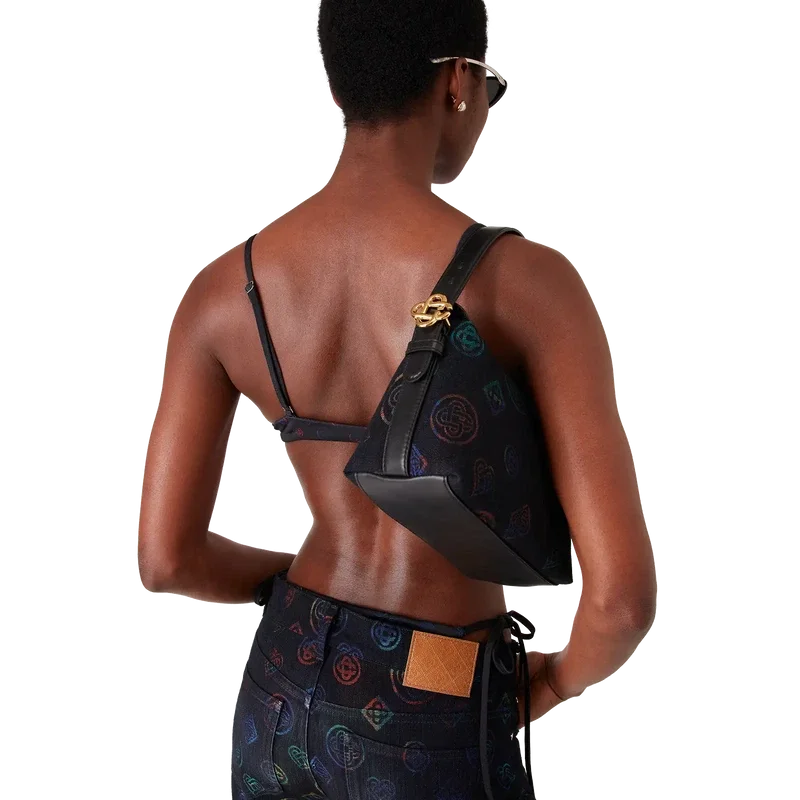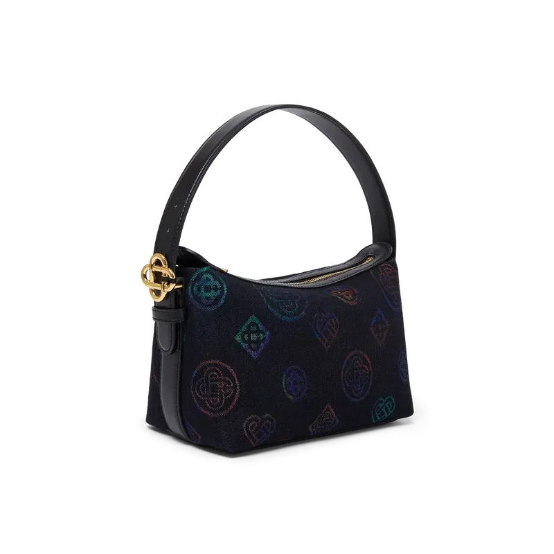 Den blå väskan i denim och läder med logotyp har en raffinerad design med husets sammanflätade CC-logotyp och en axelremssilhuett. Kompletterad med en läderrem och högkvalitativa guldpläterade metalldetaljer