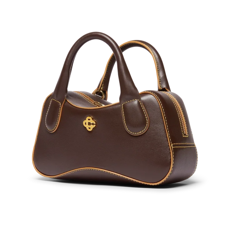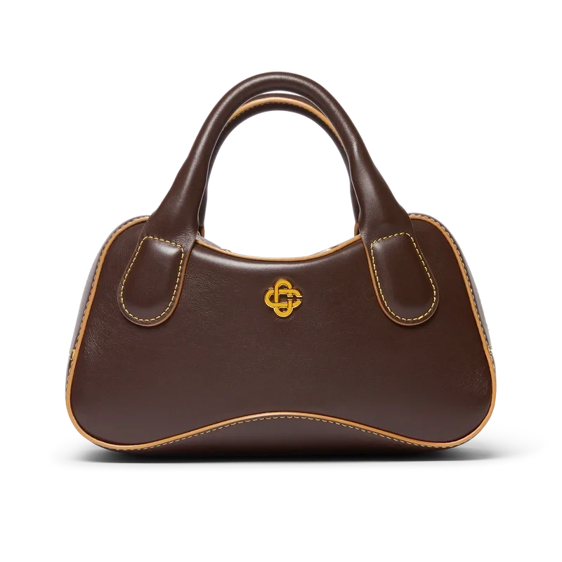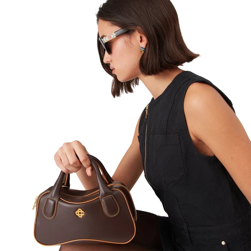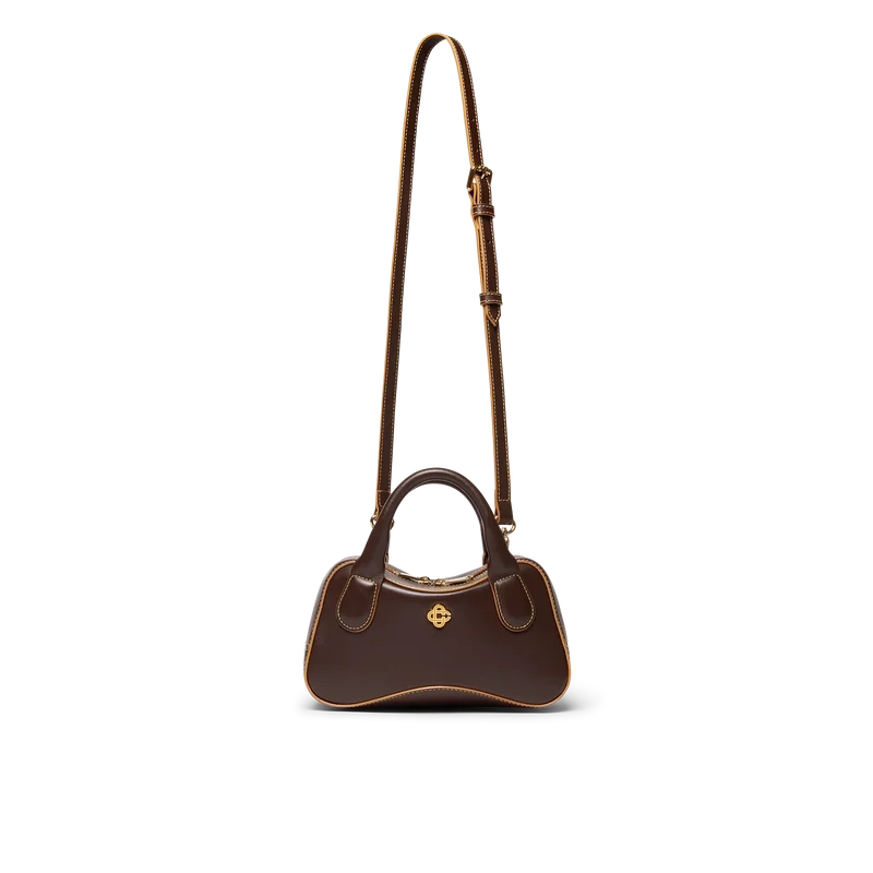 Den bruna Louise Micro-väskan är tillverkad av italienskt kalvskinn och prydd med husets sammanflätade CC-logotyp på högkvalitativa metallbeslag. Den har dragkedja, en justerbar, avtagbar rem, två handtag och ett innerfack. Levereras med en dammpåse med Casablanca-logotyp, en presentask och en produktbroschyr.