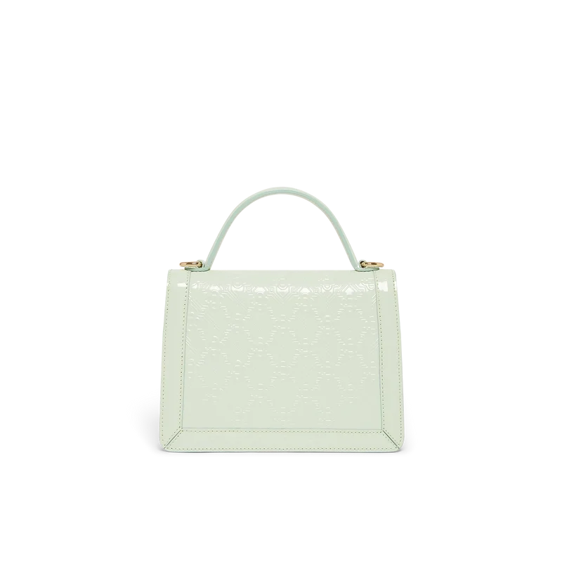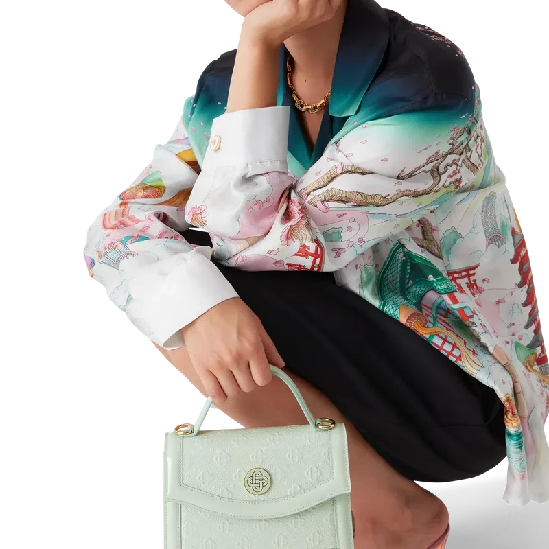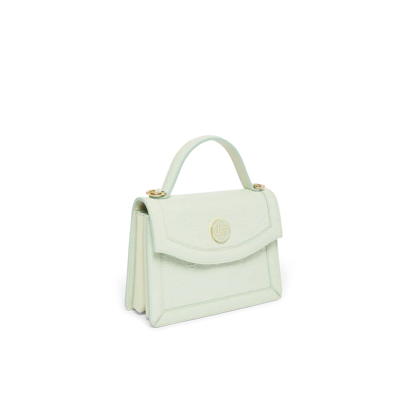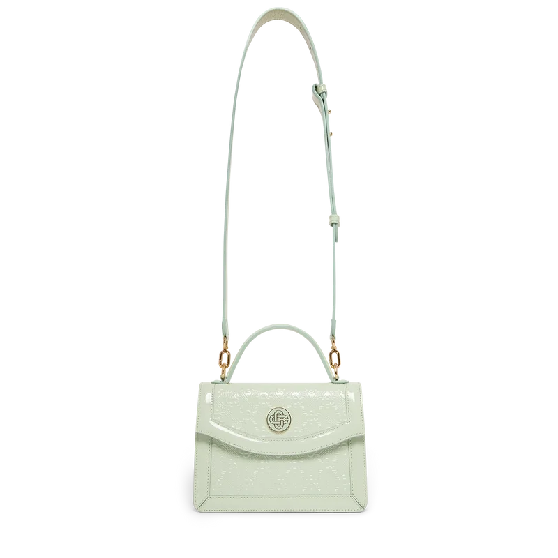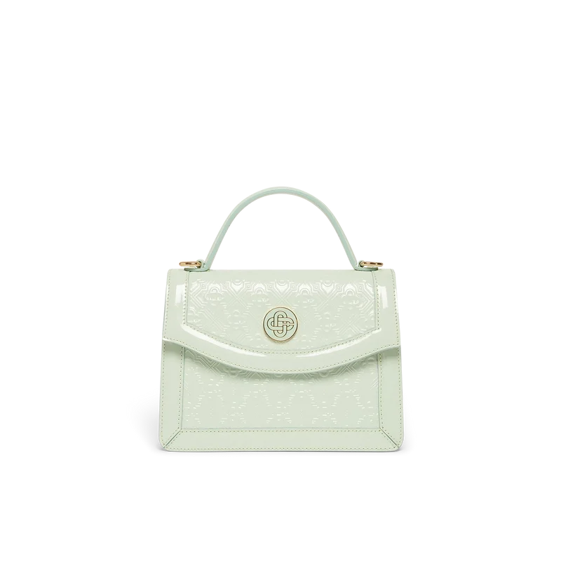Mini Jeanne-väskan med präglat mintgrönt monogram är tillverkad av italienskt kalvskinn och prydd med husets sammanflätade CC-logotyp på högkvalitativa guldpläterade metalldetaljer. Den har en flik och magnetlås, en avtagbar rem, ett handtag, ett foder i canvas och en innerficka. Denna artikel levereras med en Casablanca-dammpåse och en låda.
