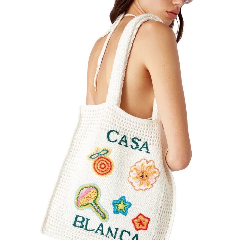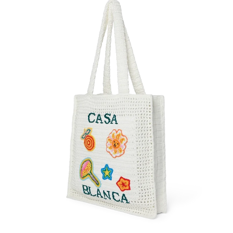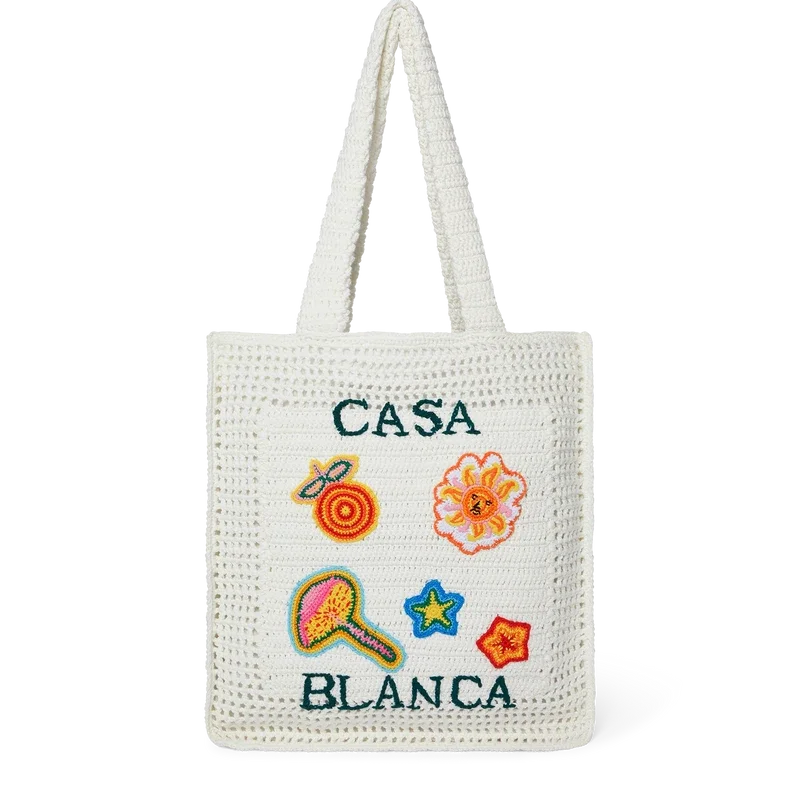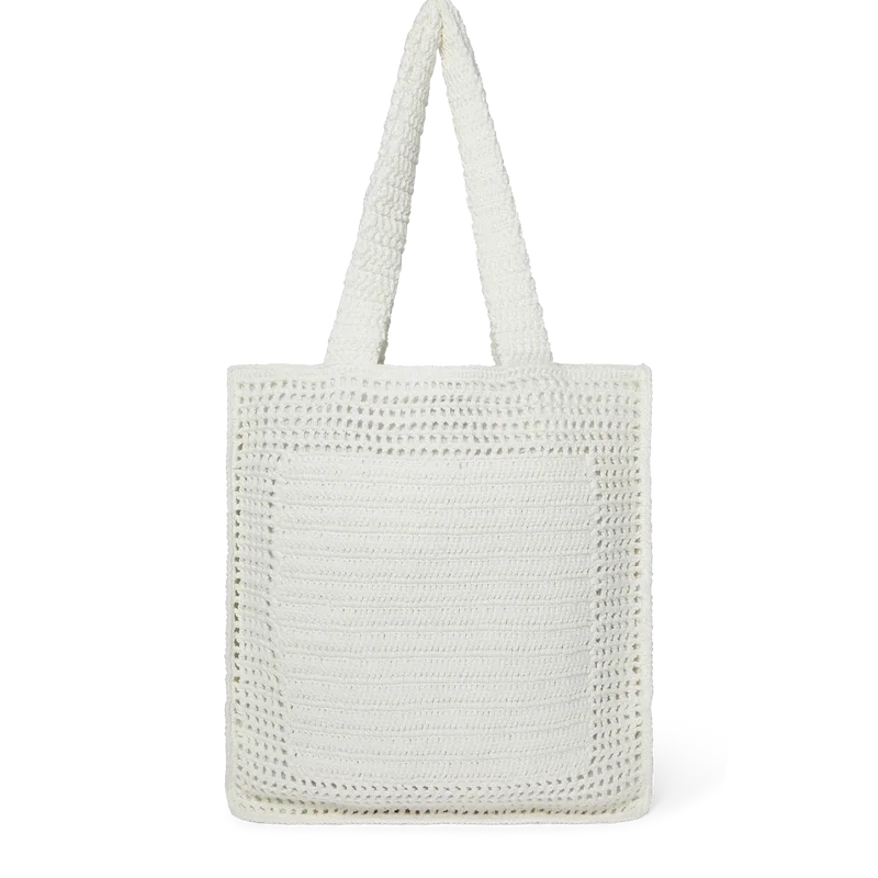 Motif Crochet Bag är en stickad väska tillverkad av virkat bomullstyg med en avslappnad silhuett. Den är försedd med ett broderat staplat logo, klassiska designelement och remmar som gör att den kan bäras över axeln eller i handen.