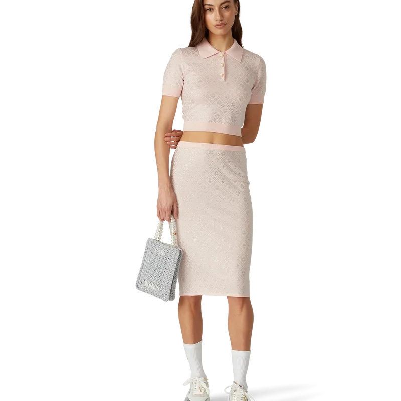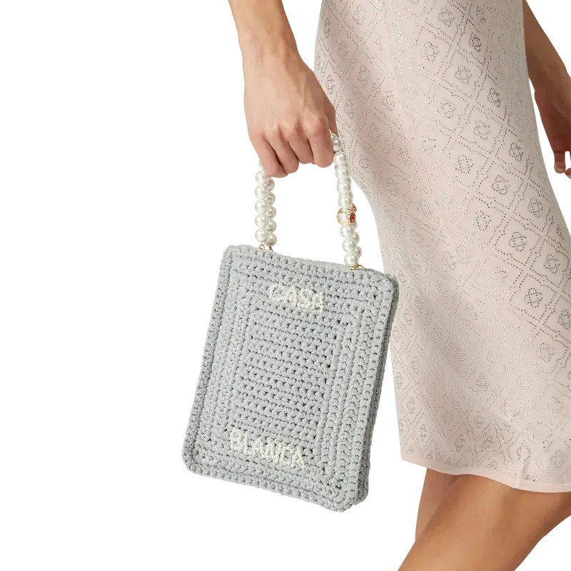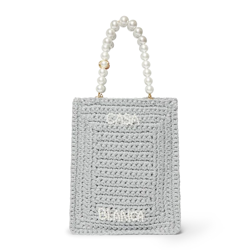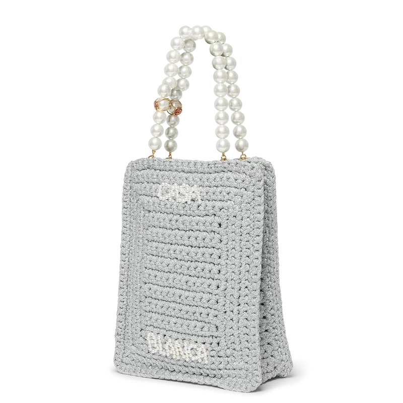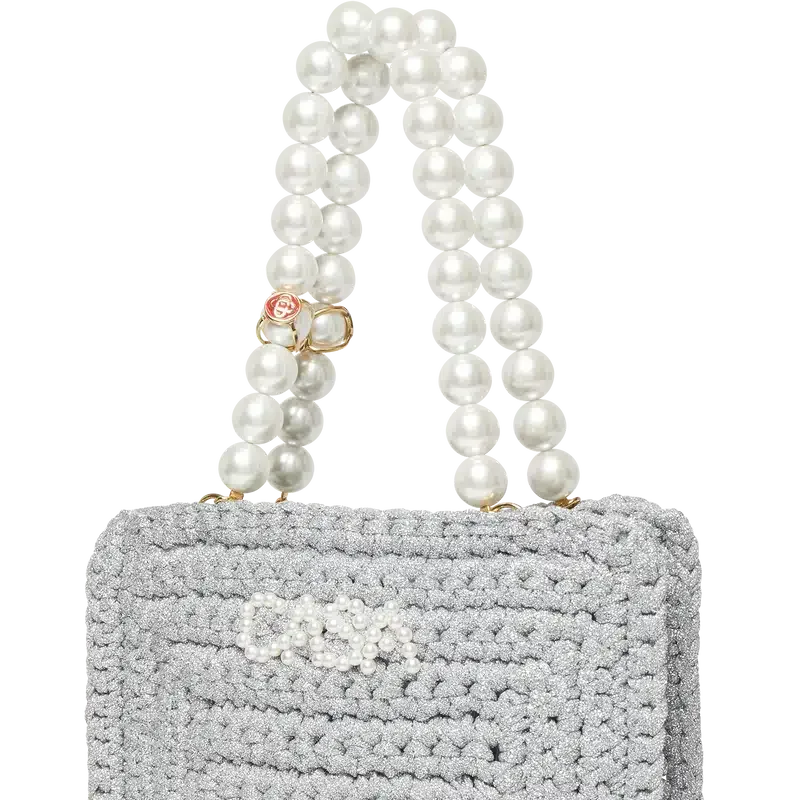 Pearl Mini Crochet Bag är tillverkad av ett virkat metalliskt tyg med pärlpärlor. Kompletterad med dubbla handtag och Casablanca-textlogotypen.