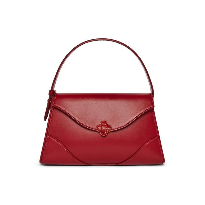 Den röda lilla Jeanne-väskan är tillverkad av italienskt kalvskinn och prydd med husets röda Diamond Monogram på högkvalitativa metallbeslag, som fungerar som spänne. Komplett med avtagbar rem, två huvudfack, foder i canvas och en innerficka. Levereras med en dammpåse och låda med märkeslogotyp.