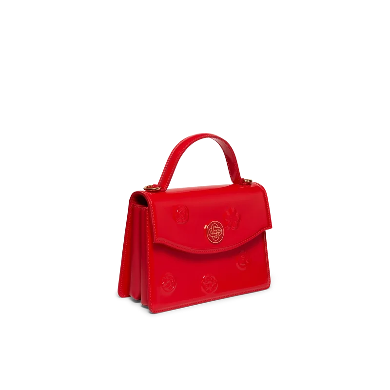 Den röda Mini Jeanne-väskan är tillverkad av italienskt kalvskinn och prydd med husets sammanflätade CC-logotyp på högkvalitativa guldpläterade metallbeslag. Komplett med lock och magnetstängning, avtagbar rem, bärhandtag, foder i canvas och en innerficka. Denna artikel levereras med en Casablanca-dammpåse och låda.
