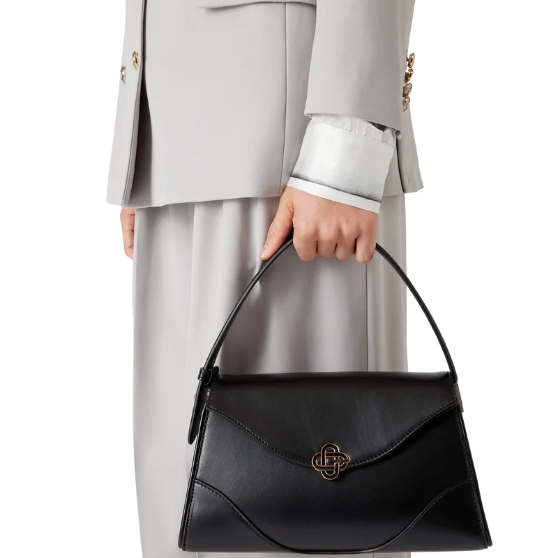 Den svarta lilla Jeanne-väskan är tillverkad av italienskt kalvskinn och prydd med husets röda Diamond Monogram på högkvalitativa metallbeslag, som fungerar som spänne. Komplett med avtagbar rem, två huvudfack, foder i canvas och en innerficka. Levereras med en dammpåse och låda med märkeslogotyp.