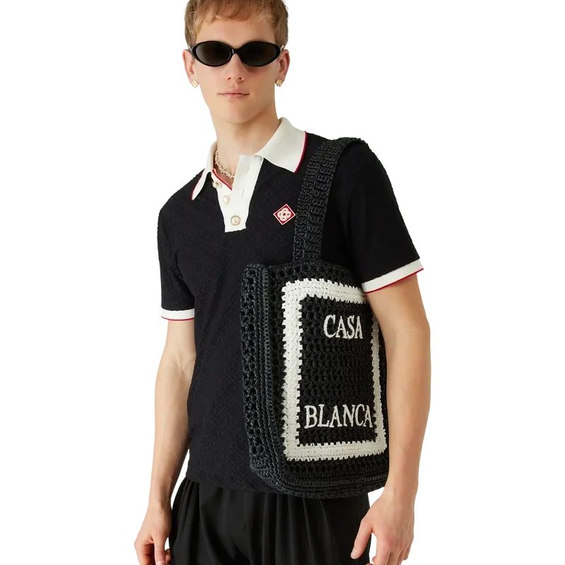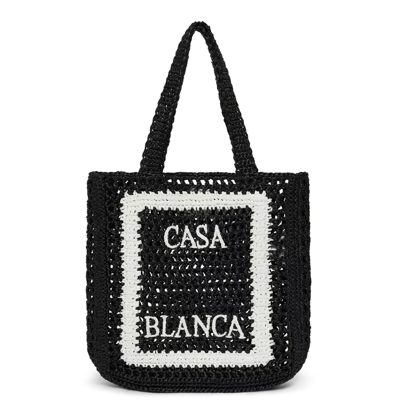 Raffia-väskan har en raffinerad design med en avslappnad silhuett. Den är försedd med Casablancas staplade logotyp och remmar som gör att väskan kan bäras över axeln eller i handen.