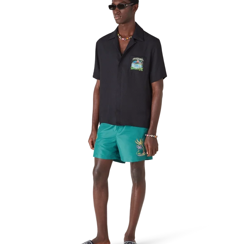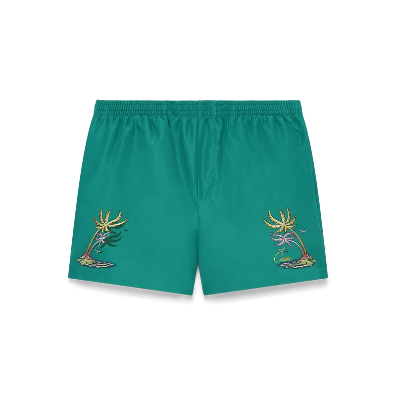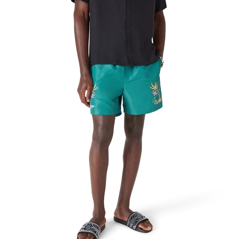 Casa Embroidery Swim Shorts har färgglada palmer som dansar i havsbrisen, återgivna i precis broderi som fångar den rytmiska rörelsen hos tropiskt lövverk. Kompletterade med elastisk midjeresår, sidfickor och teknisk badklädeskonstruktion som förkroppsligar husets sofistikerade syn på lyxiga badkläder.