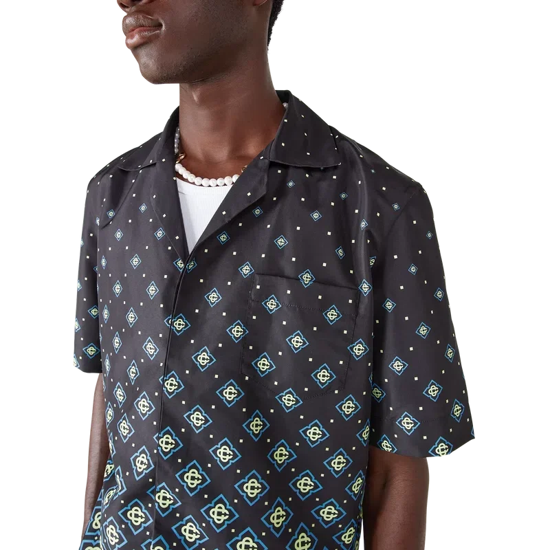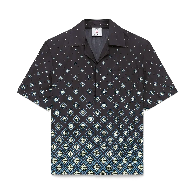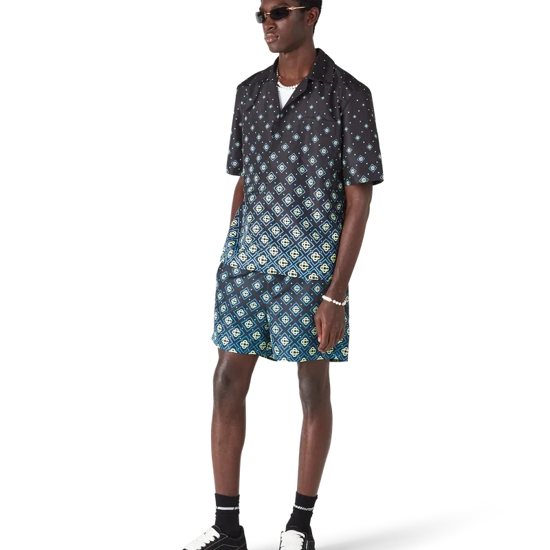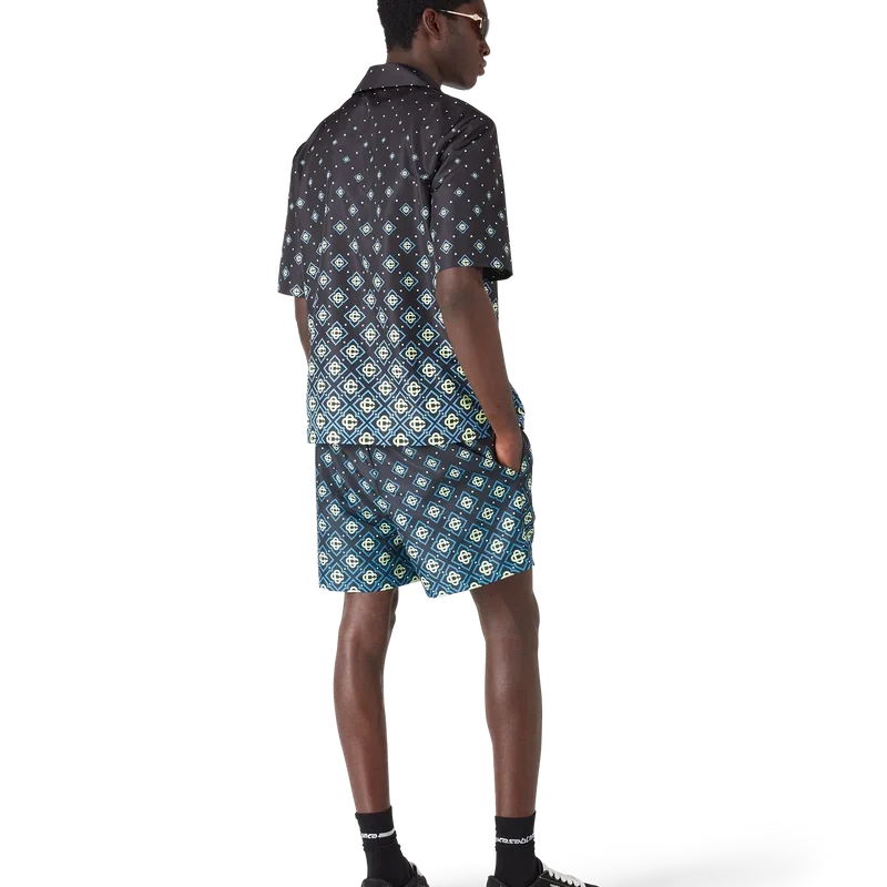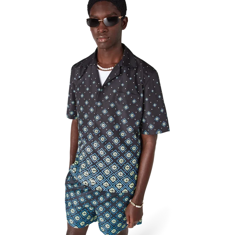 Badtröjan i svart monogram med tonövergång är en raffinerad teknisk design med husets monogrammönster. Den är tillverkad i tekniskt badtyg och har korta ärmar, knäppning, knappar med CC-logotyp i corozo och sofistikerade detaljer som fångar varumärkets exklusiva approach till badkläder.