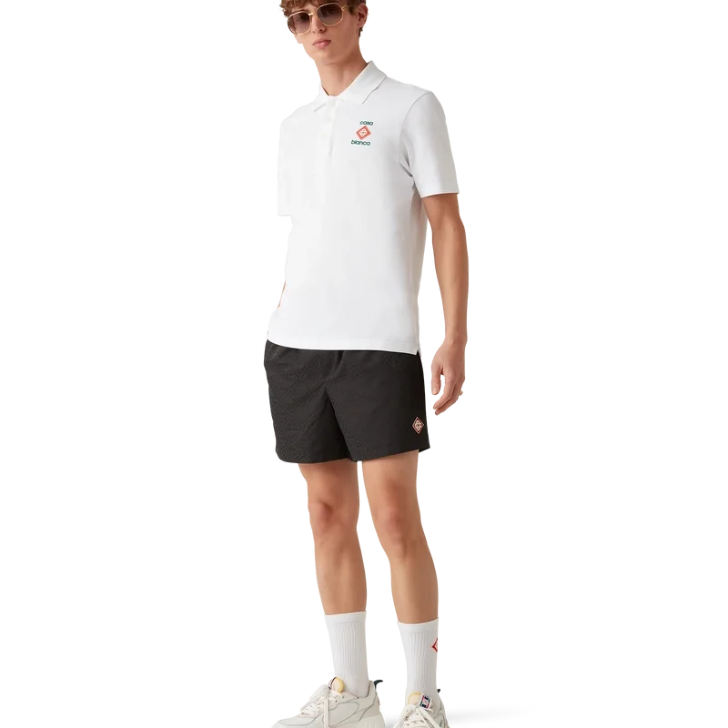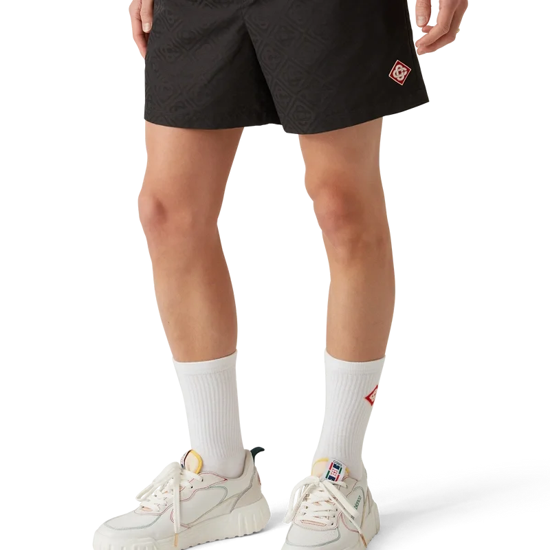Jacquard-shortsen är ett heltäckande tryckt plagg tillverkat av husets signaturtyg med monogram. Kompletteras med en elastisk midjeresår med invändig dragsko, fickor i sidorna och ett foder i mesh.