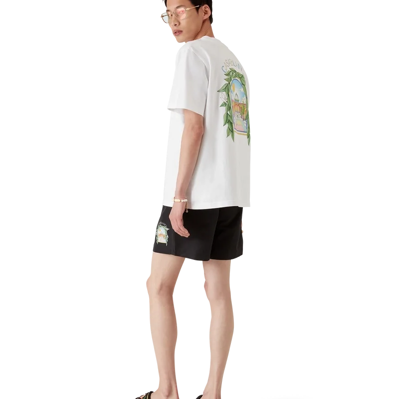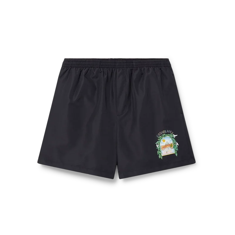 L’arche De Tennis shorts är tillverkade av ett polyestertyg med husets signaturtryck i form av en båge, som har fått en ny tolkning denna säsong. De har en elastisk midjeresår, dragsko med gulddetaljer, sidofickor i sömmarna och en påsydd ficka bak.